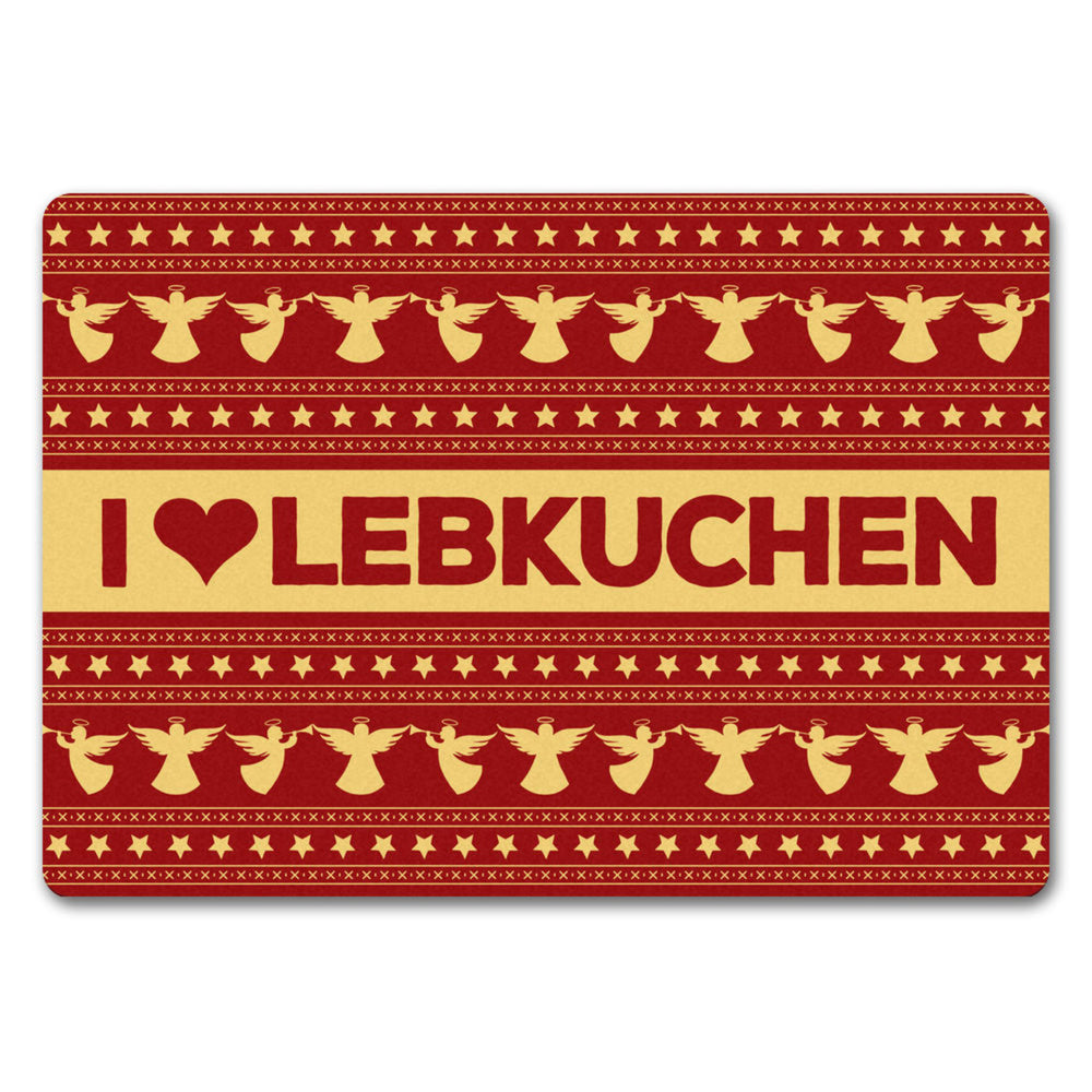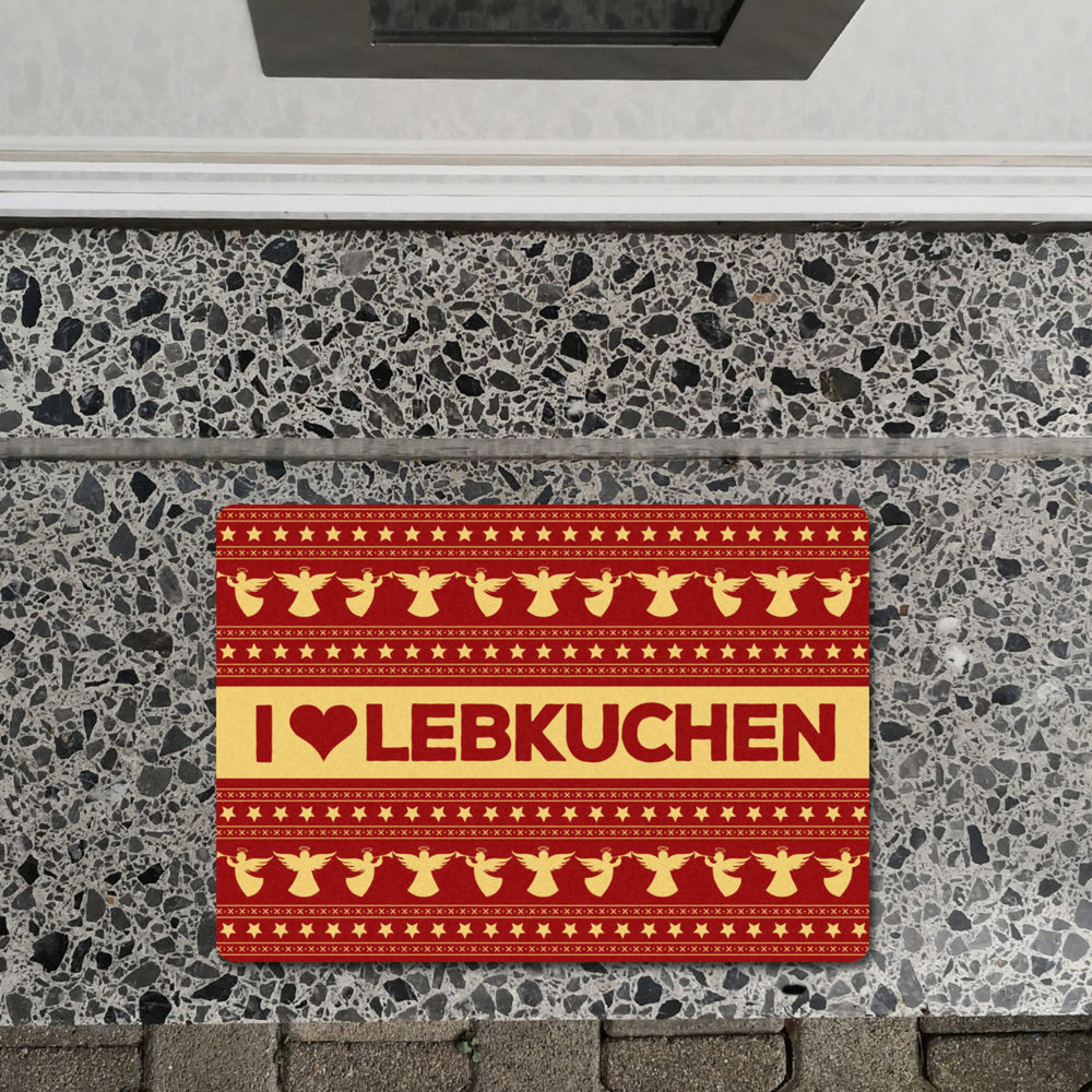 I love Lebkuchen Fußmatte ohne Rand in rot mit Weihnachtsmuster Motiv