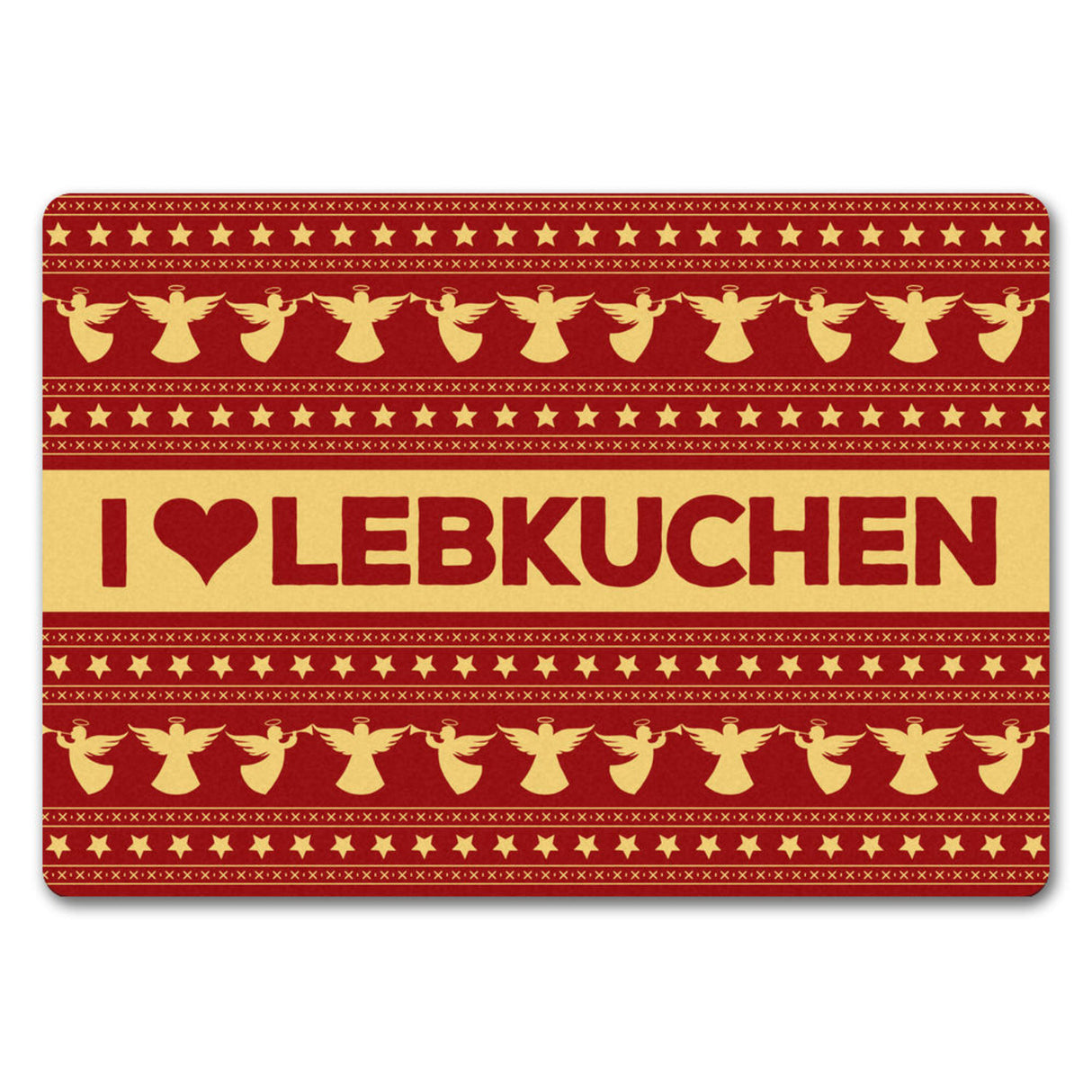 - Lieferumfang: 1x I love Lebkuchen Fußmatte ohne Rand in rot mit Weihnachtsmuster Motiv