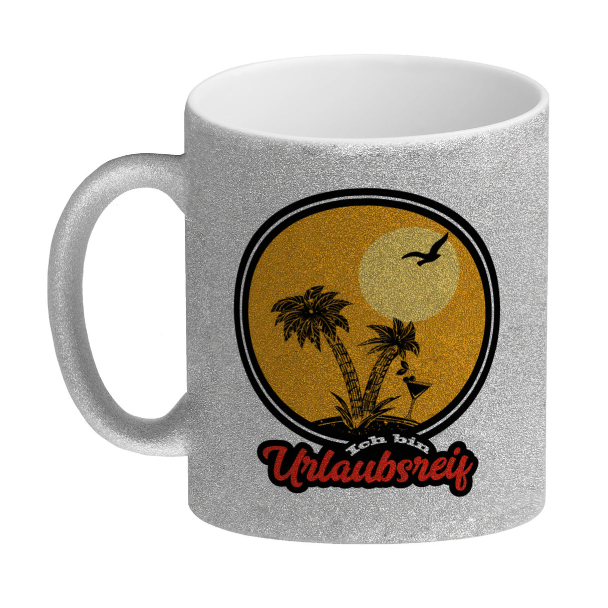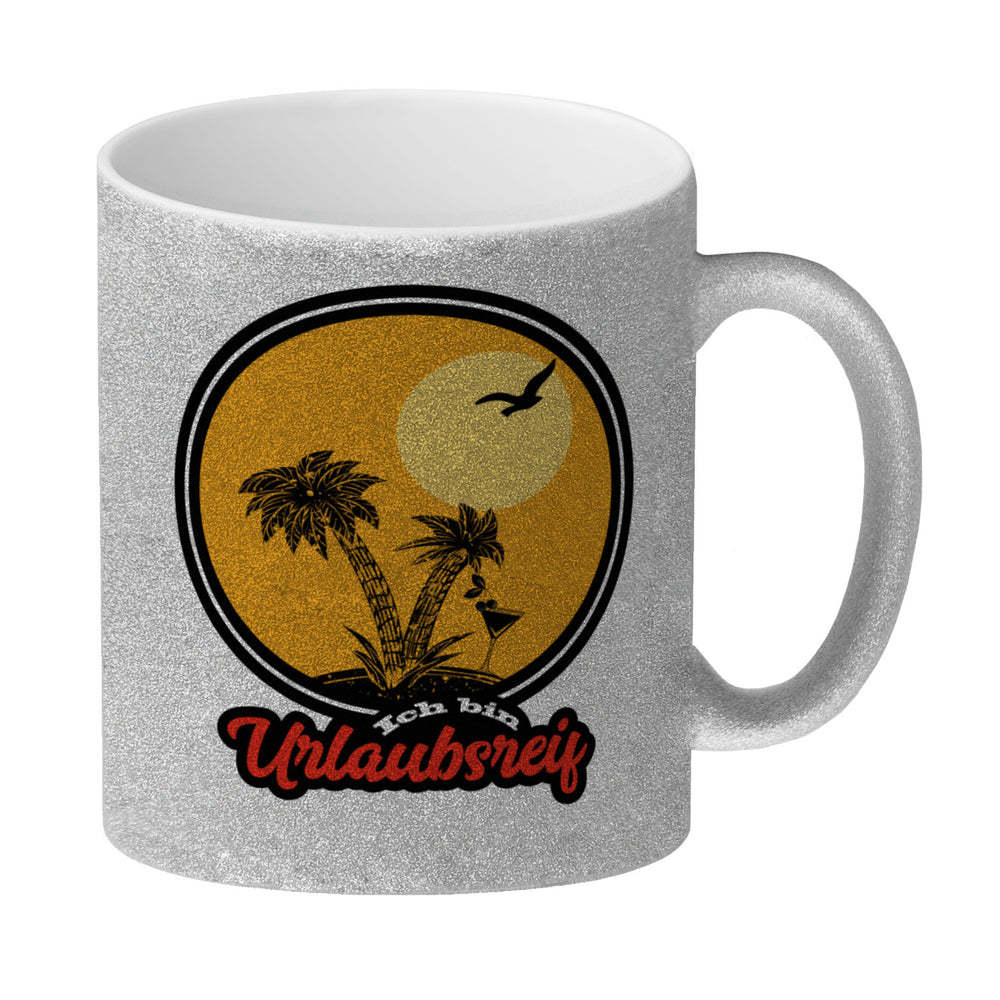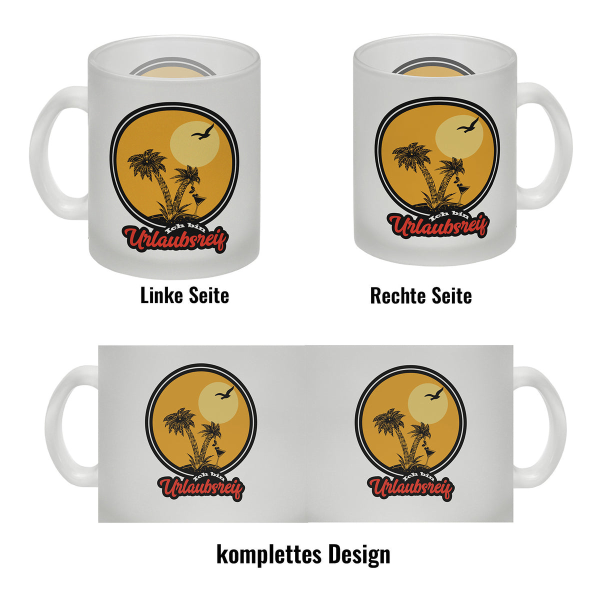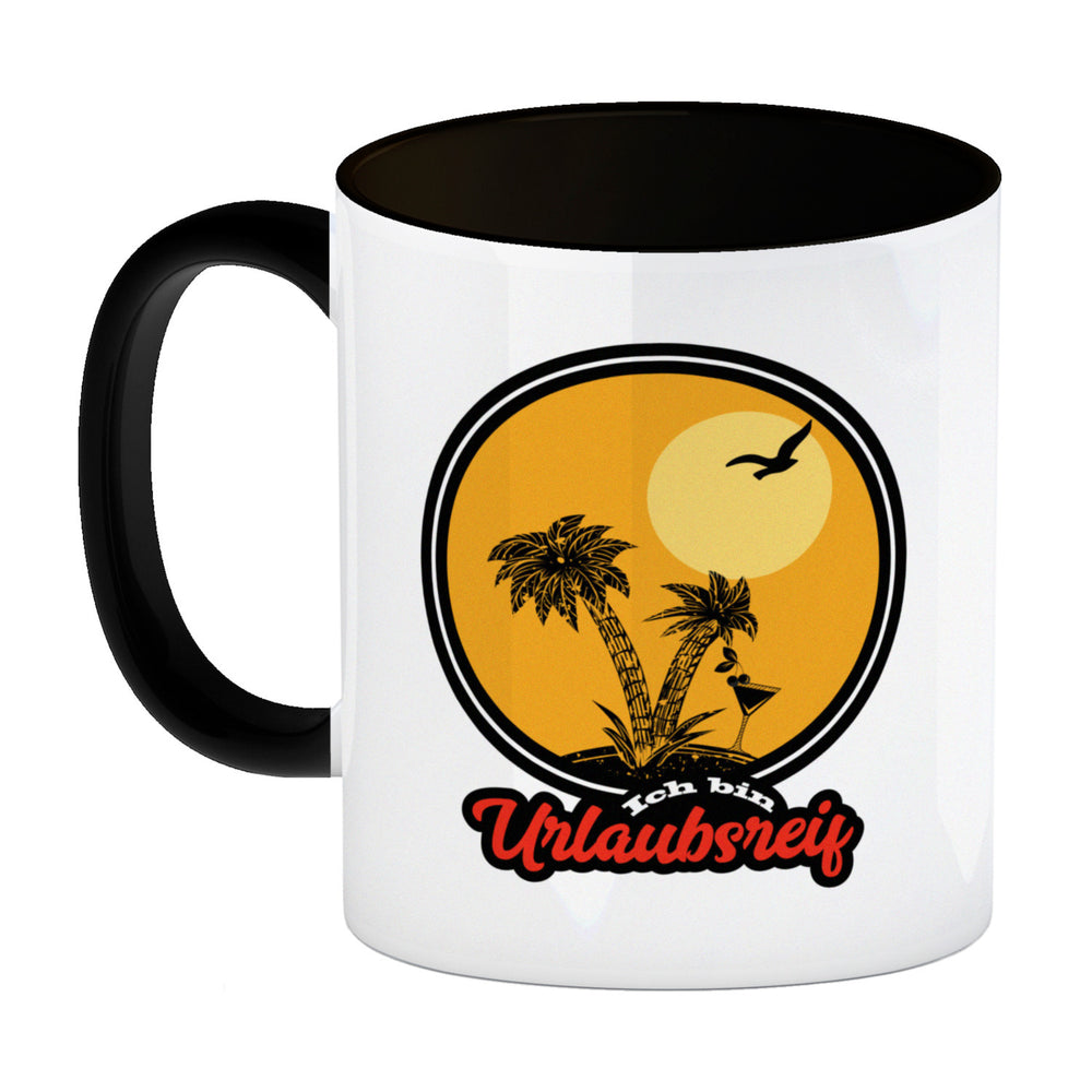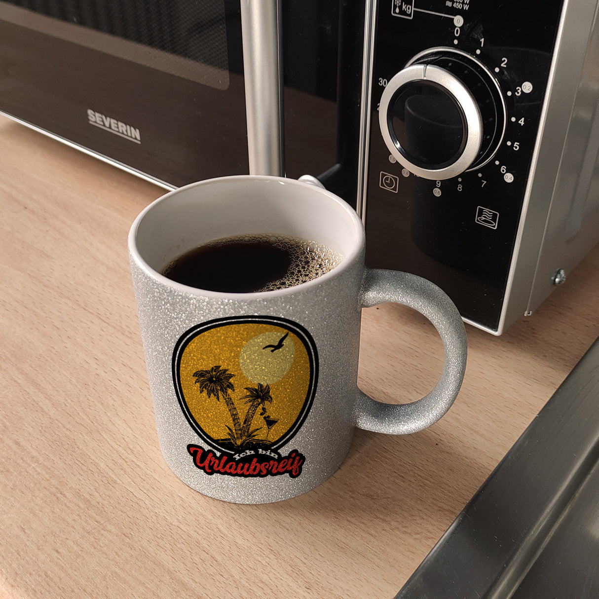 - 1x Ich bin Urlaubsreif Kaffeebecher mit Palmen in der gewählten Ausführung