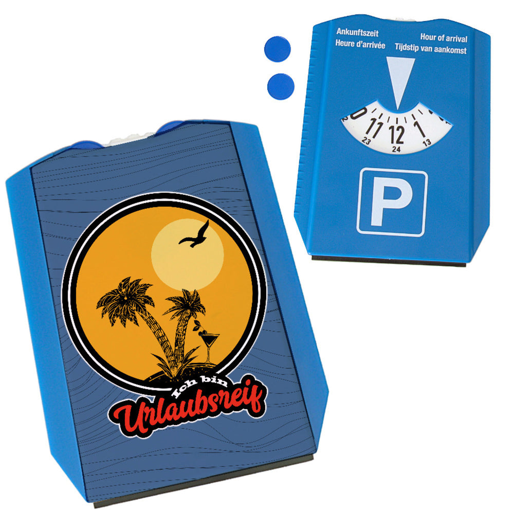 - Eine super Geschenkidee für alle Autofahrer, die dekorative Parkscheibe mit dem Motiv Urlaubsreif. Der Artikel hat ein Palmen-Motiv mit Schriftzug: Ich bin Urlaubsreif drauf aufgedruckt und vermittelt sofort Sommergefühle!