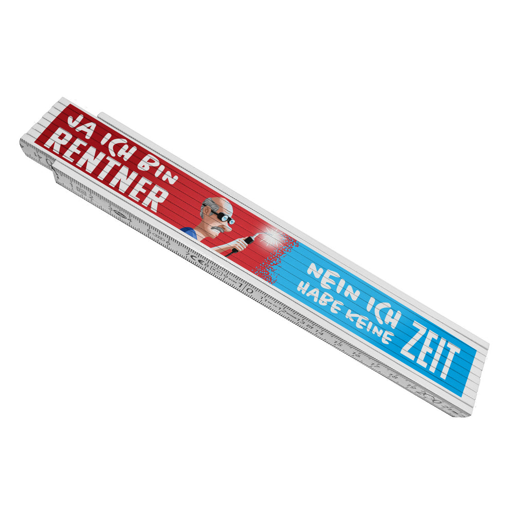 Wenn auch du einen Rentner kennst, der in der Rente es einfach nicht lassen kann und nie Zeit hat, dann ist dieser Meterstab perfekt für dich. Der lustige Zollstock mit witzigem Spruch macht den Meterstab zu einem witzigen Geschenk für Rentner. Hinweise: Material: Holz / 2m Gesamtlänge