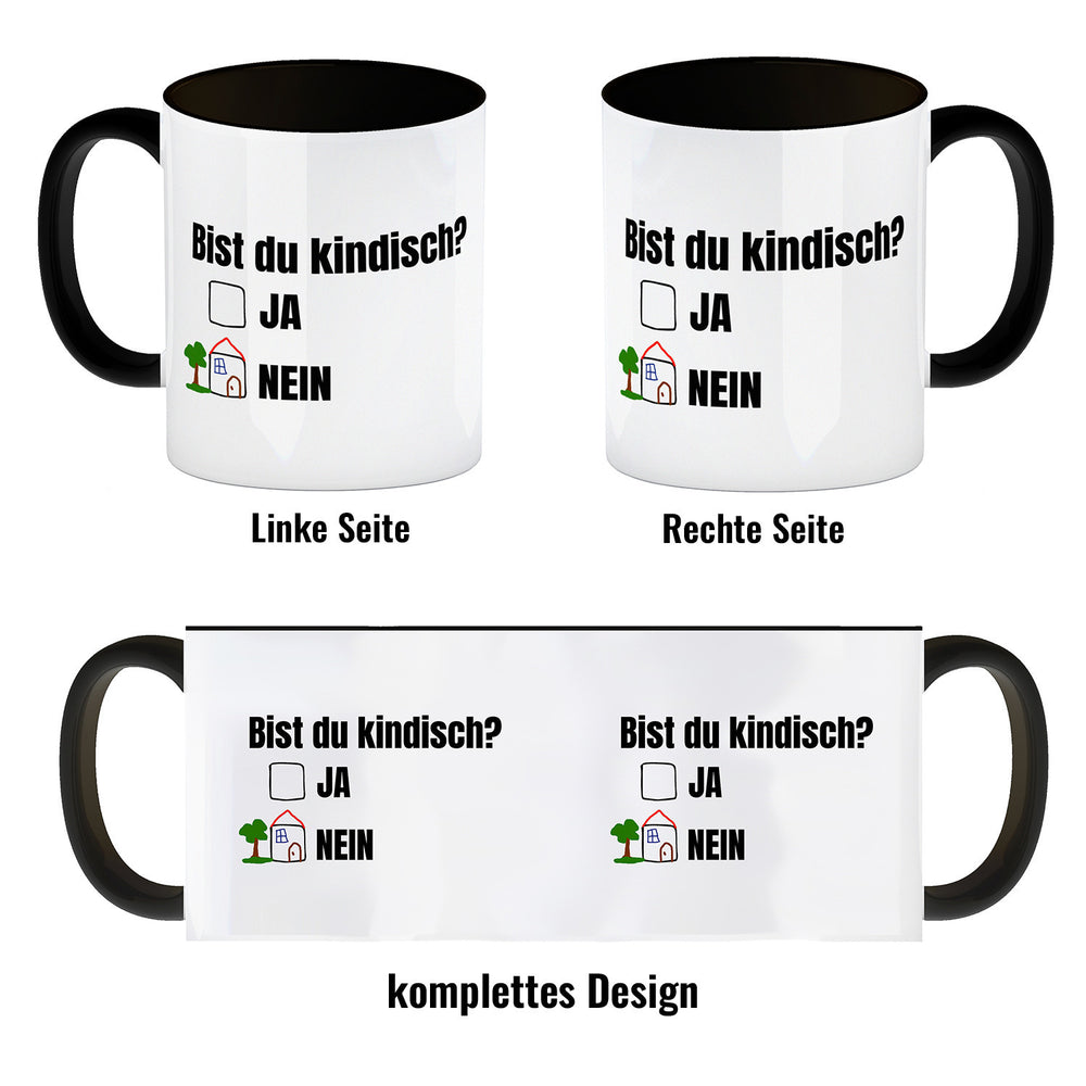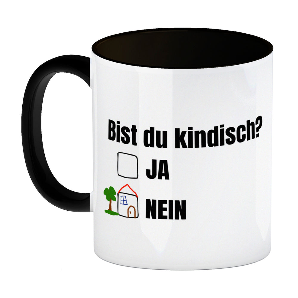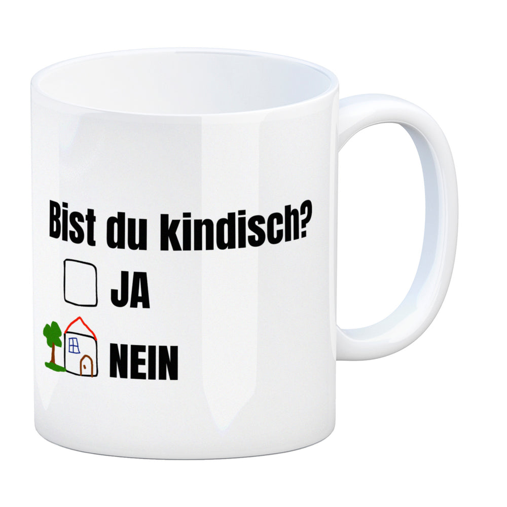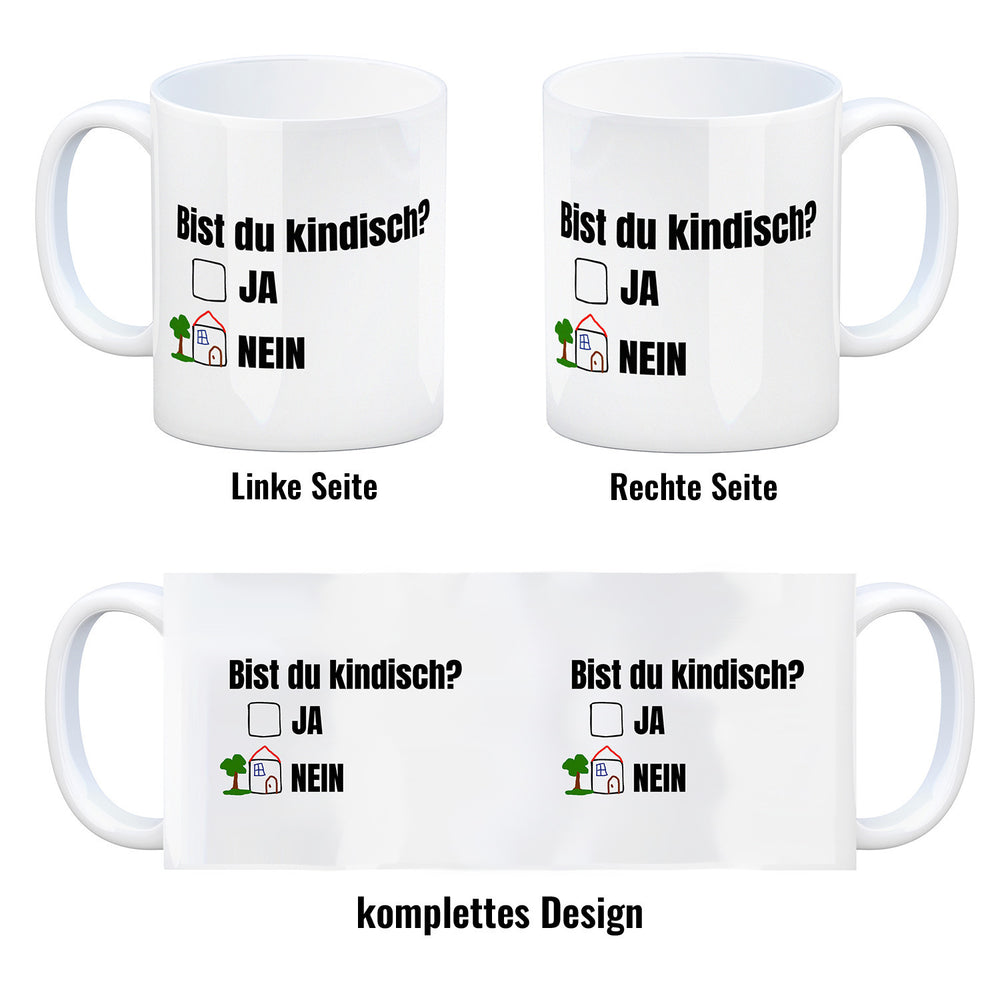 • 1x Kaffeebecher Bist du kindisch mit Häuschen - Tasse in der gewählten Ausführung