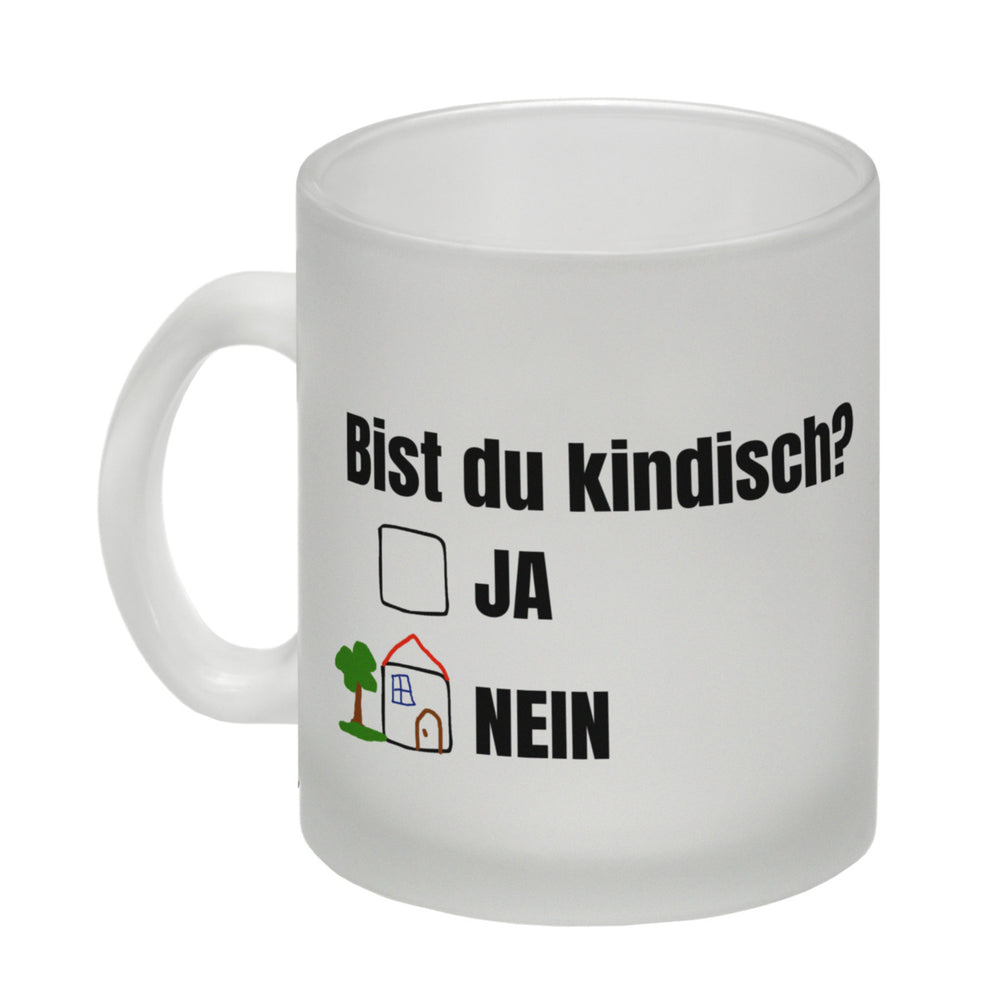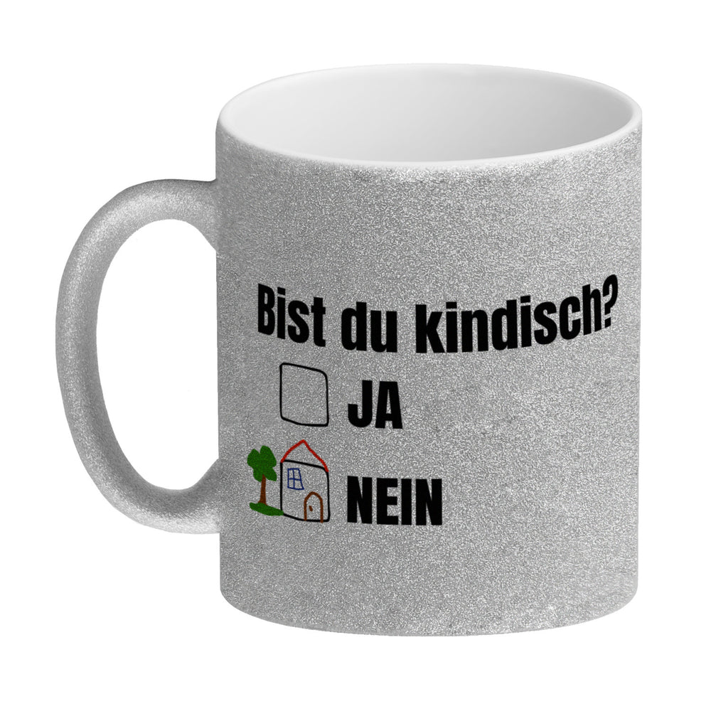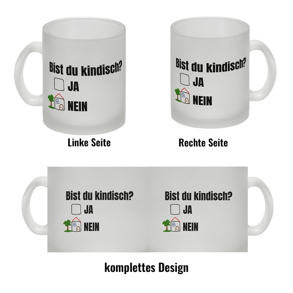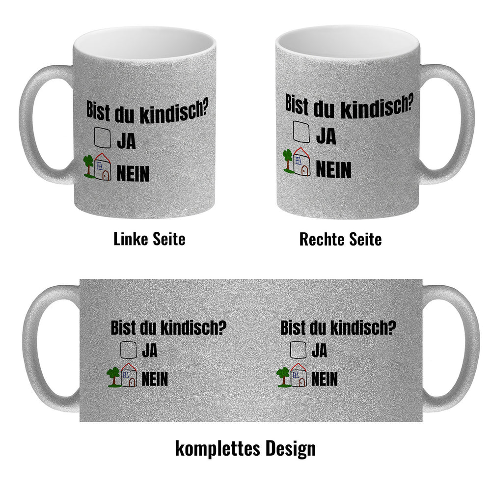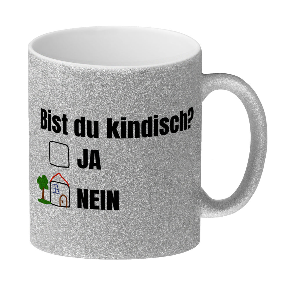 • 1x Kaffeebecher Bist du kindisch mit Häuschen - Tasse in der gewählten Ausführung