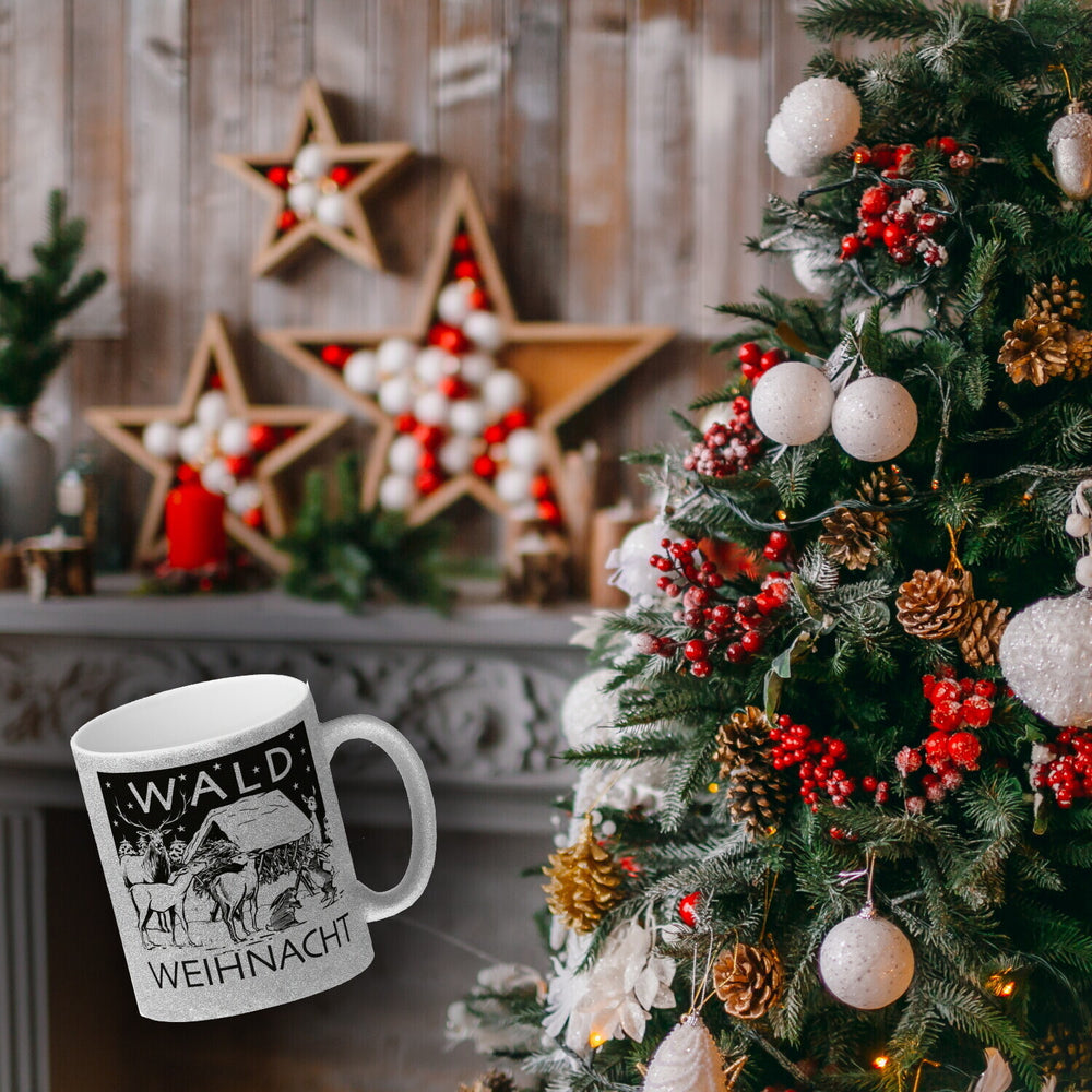 Unser Kaffeebecher zum Thema Weihnachten im Wald ist ein wunderschönes Geschenk für alle, die sich eine kleine Erinnerung an die schönsten Momente schenken möchten. Erhältlich in verschiedenen Varianten, von weißer Standardtasse bis hin zu edler Glastasse oder exklusiver Silberedition mit Glitzereffekt. Mit liebevoll aufgedrucktem Motiv auf beiden Seiten des Bechers und dem Spruch Wald Weihnacht kann man jeden Tag an den Zauber der Festtage erinnern. Unsere Kaffeebecher werden mit Sorgfalt in Handarbeit hergestellt, so dass Sie lange Freude an Ihrem Geschenk haben werden. Holen Sie sich jetzt den nostalgischen Charme des Weihnachtswaldes nach Hause und verschenken Sie ein Stück Weihnachtsmagie!