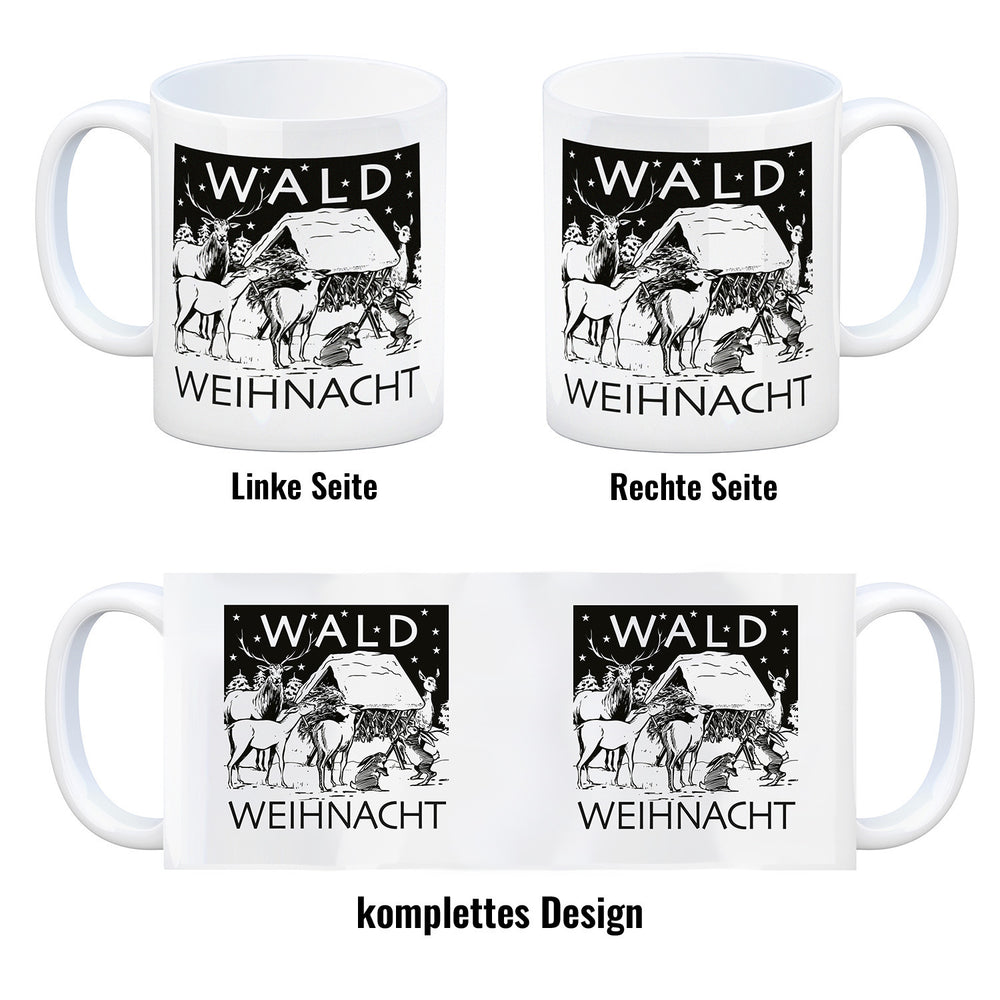 • 1x Kaffeebecher zum Thema Weihnachten im Wald -weiß in der gewählten Ausführung
