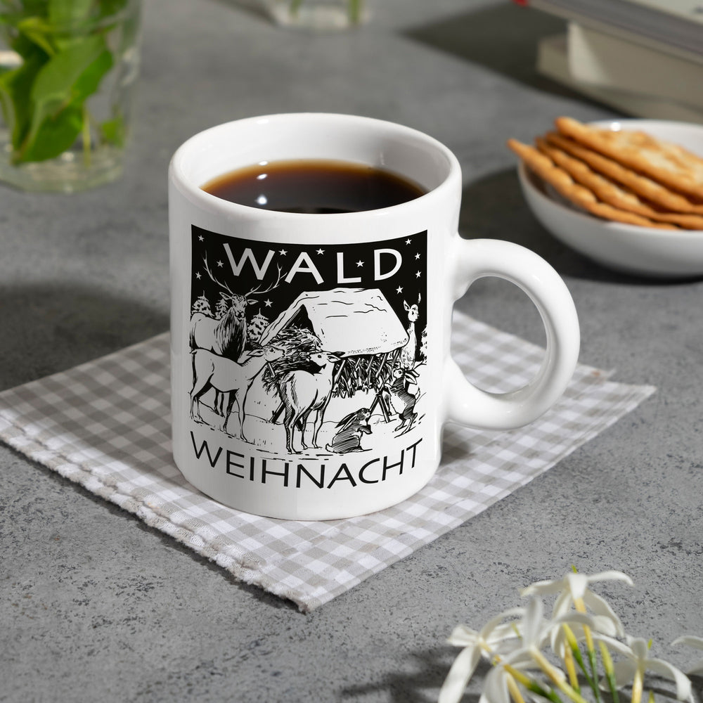 • Kaffeebecher zum Thema Weihnachten im Wald eignen sich perfekt als Geschenk zu Weihnachten.