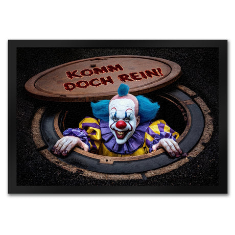 Horrorclown unter Kanaldeckel Fußmatte in 35x50 cm - Komm doch rein
