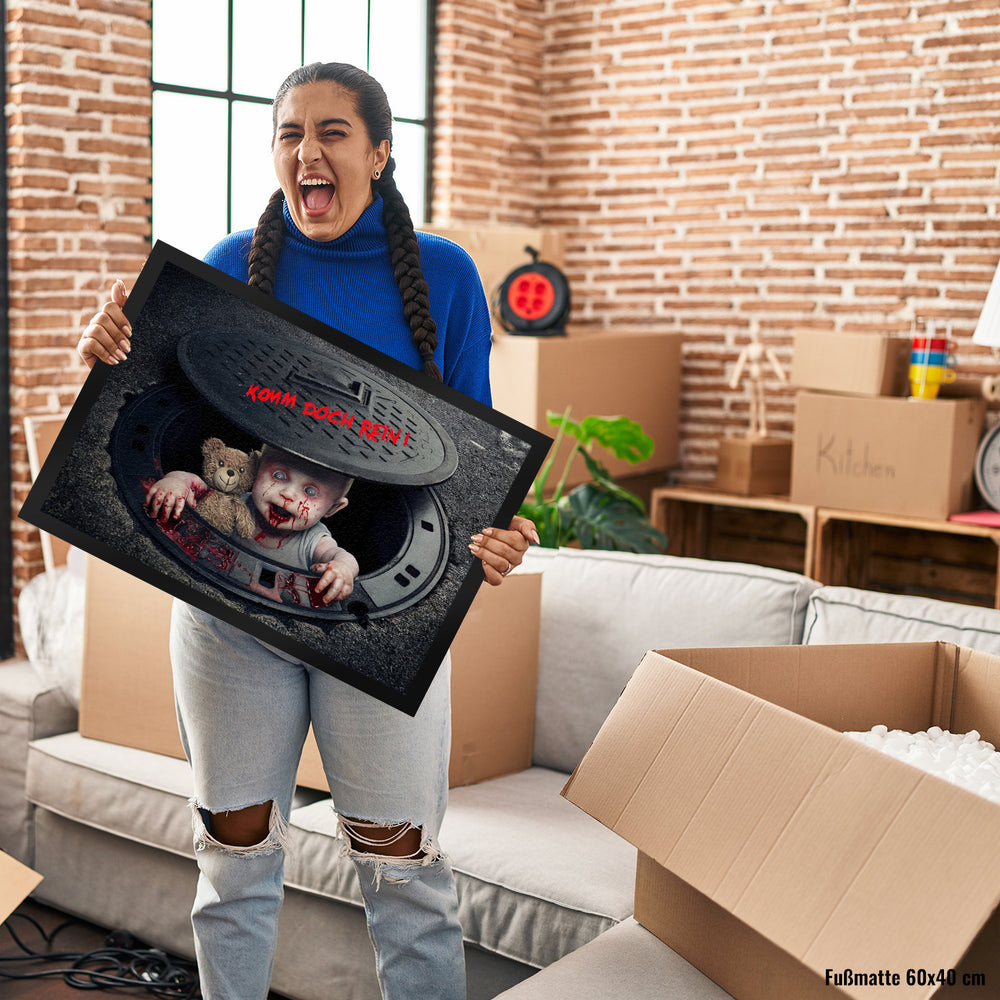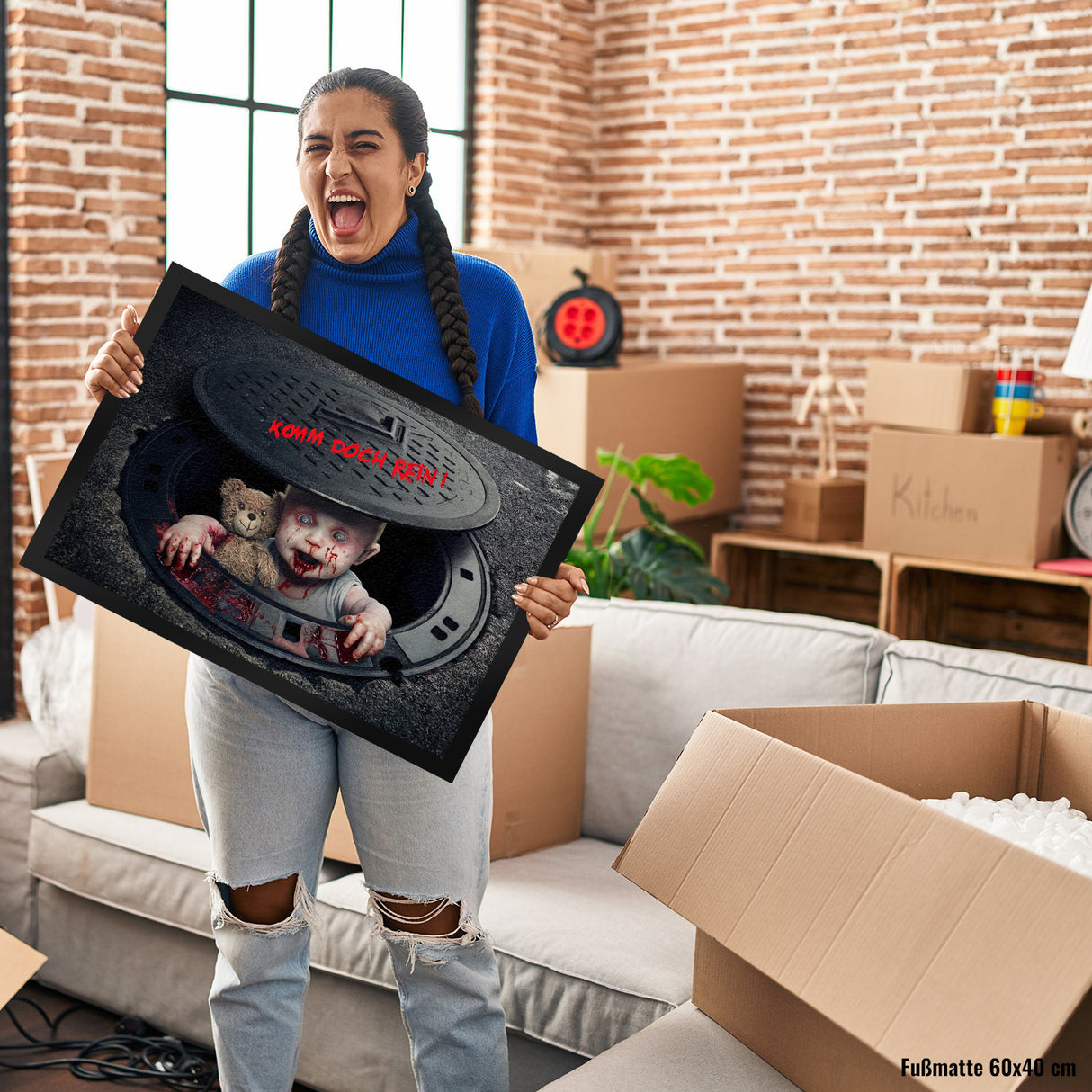 Killer-Baby unter Kanaldeckel Fußmatte in 35x50 cm - Komm doch rein - 50x35 cm ist auf Lager und wird versandt, sobald es wieder verfügbar ist