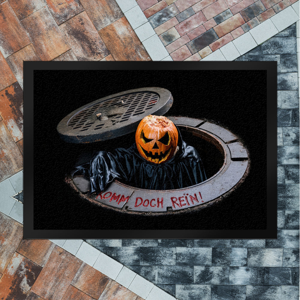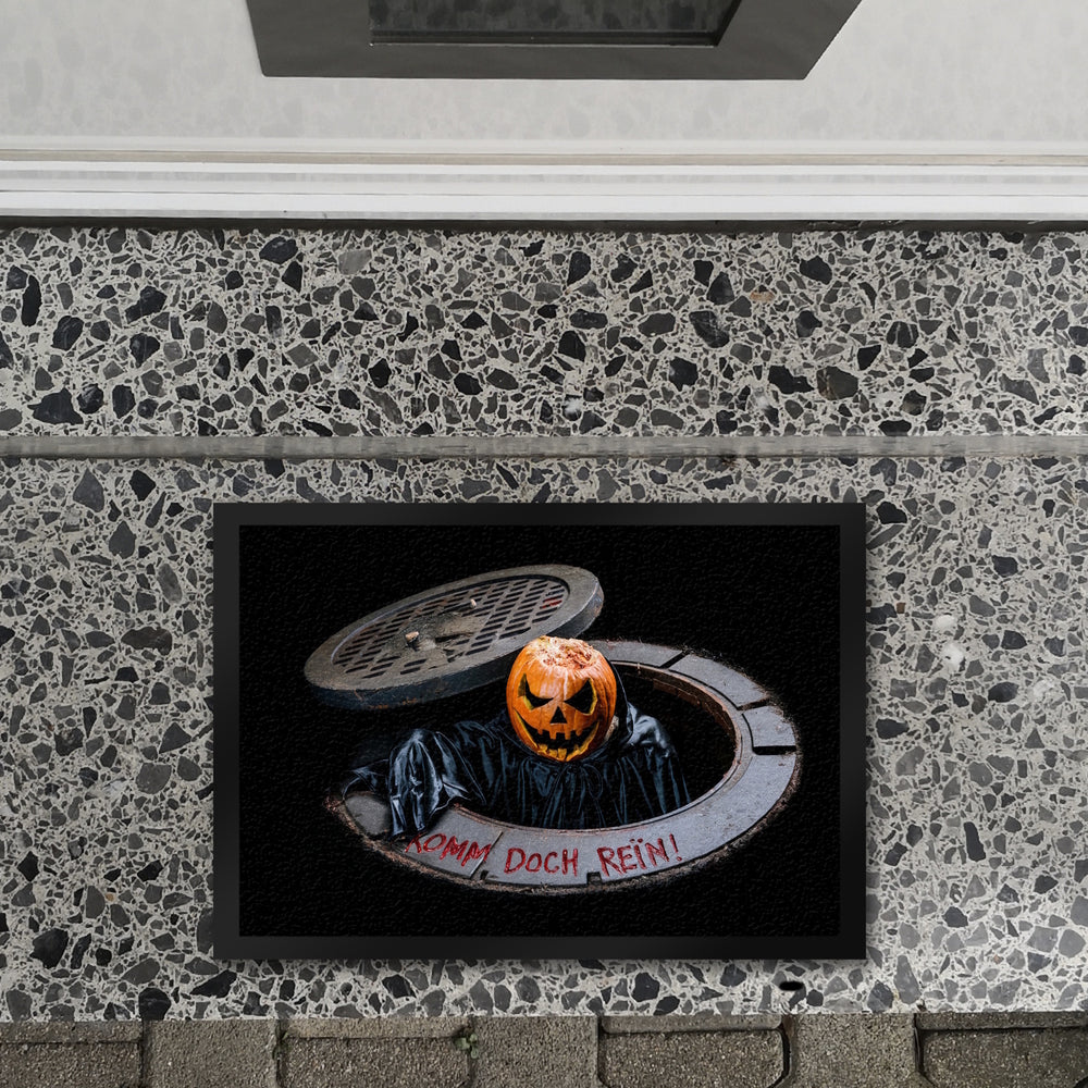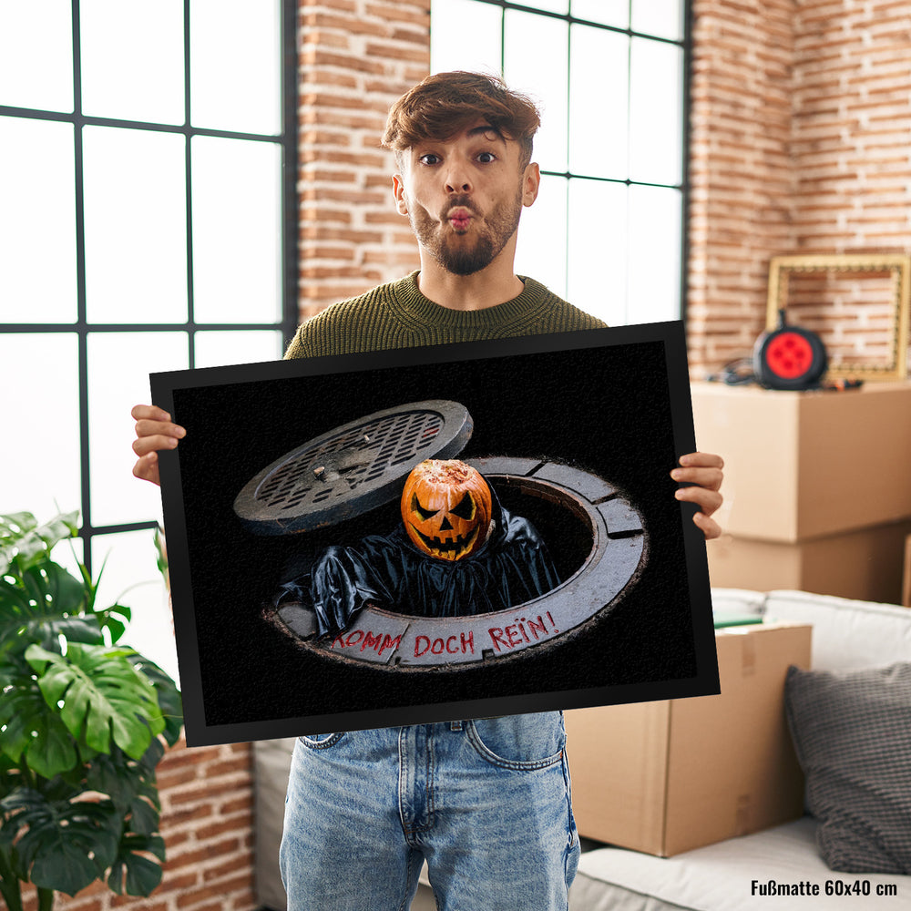 Kürbisgeist im Kanaldeckel Fußmatte in 35x50 cm - Komm doch rein
