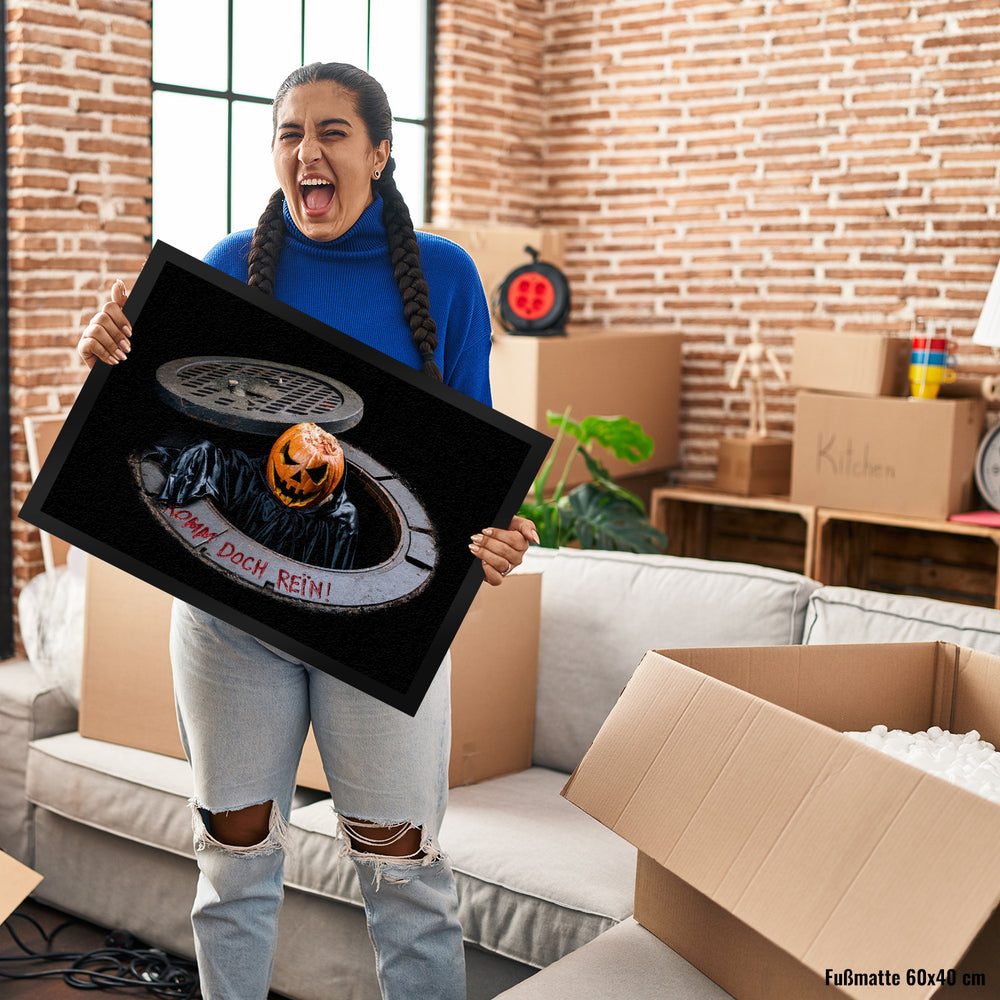 Horrorclown unter Kanaldeckel Fußmatte in 35x50 cm - Komm doch rein