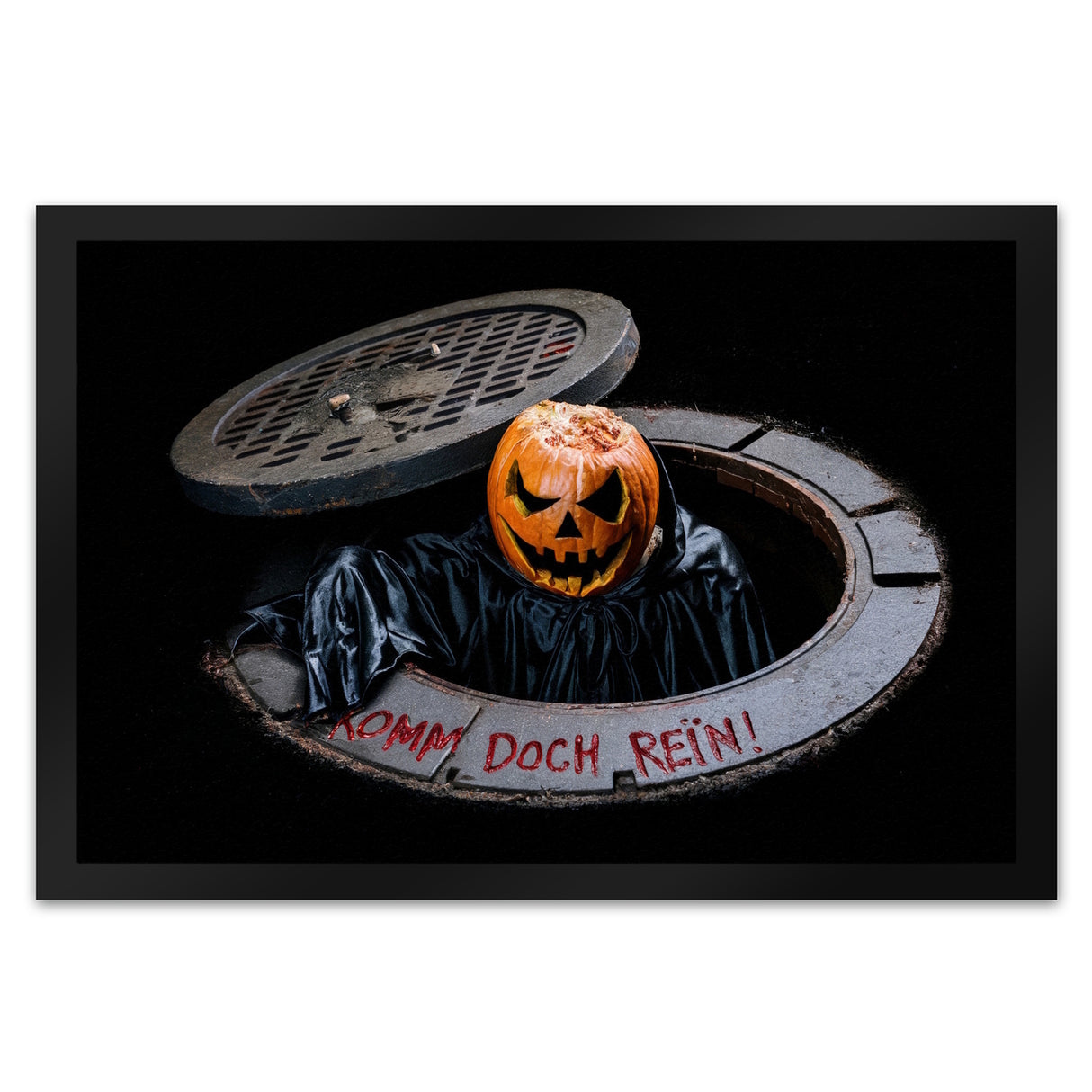 Kürbisgeist im Kanaldeckel Fußmatte in 35x50 cm - Komm doch rein - 50x35 cm ist auf Lager und wird versandt, sobald es wieder verfügbar ist