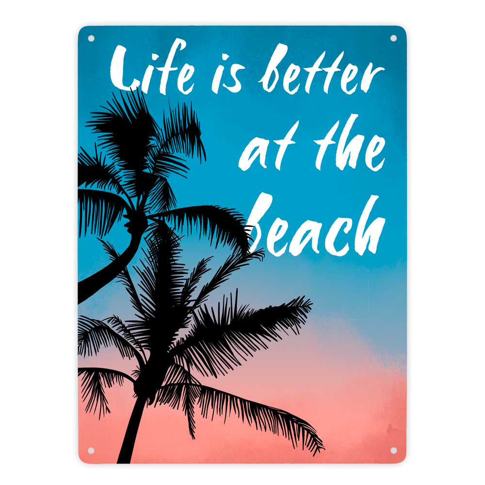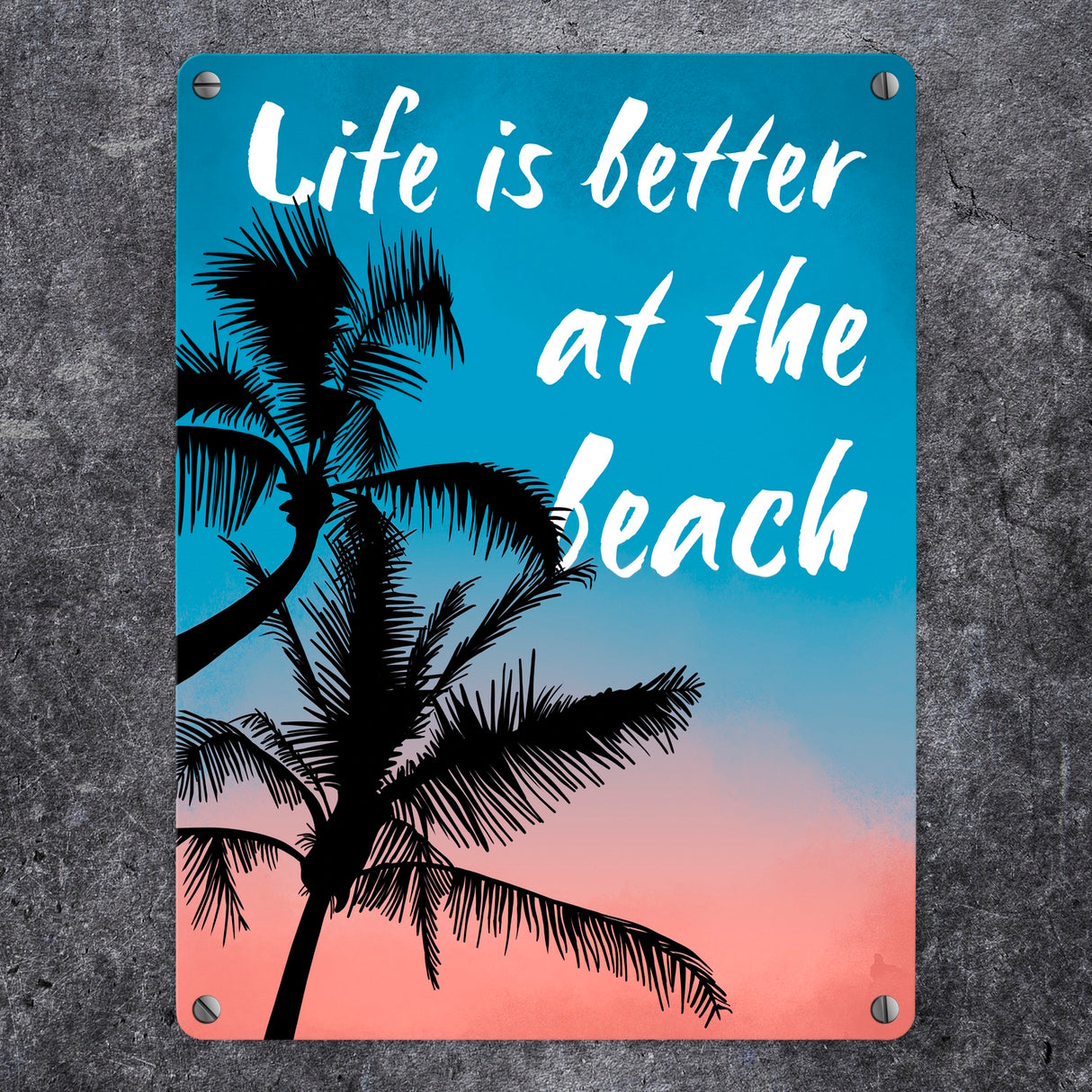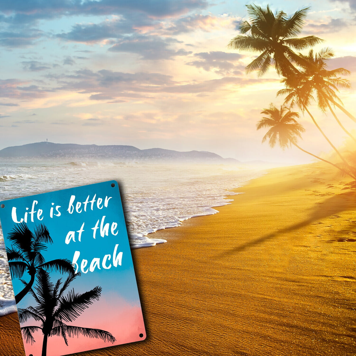 • 1x Life is better at the beach Metallschild mit Palmenmotiv in der gewählten Größe