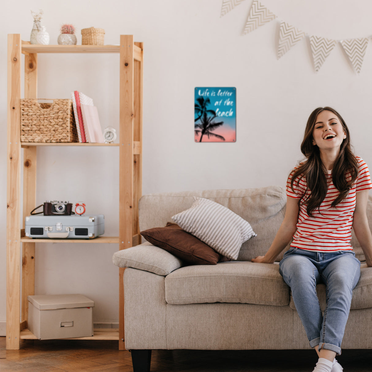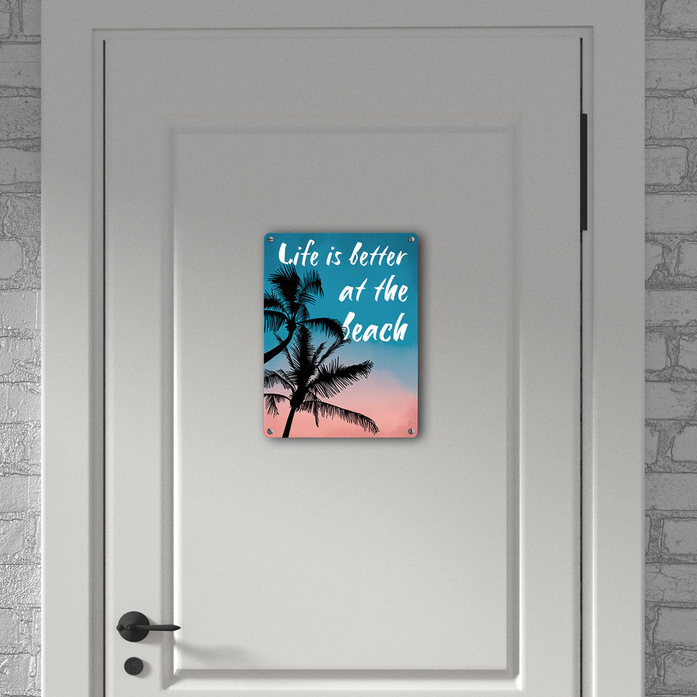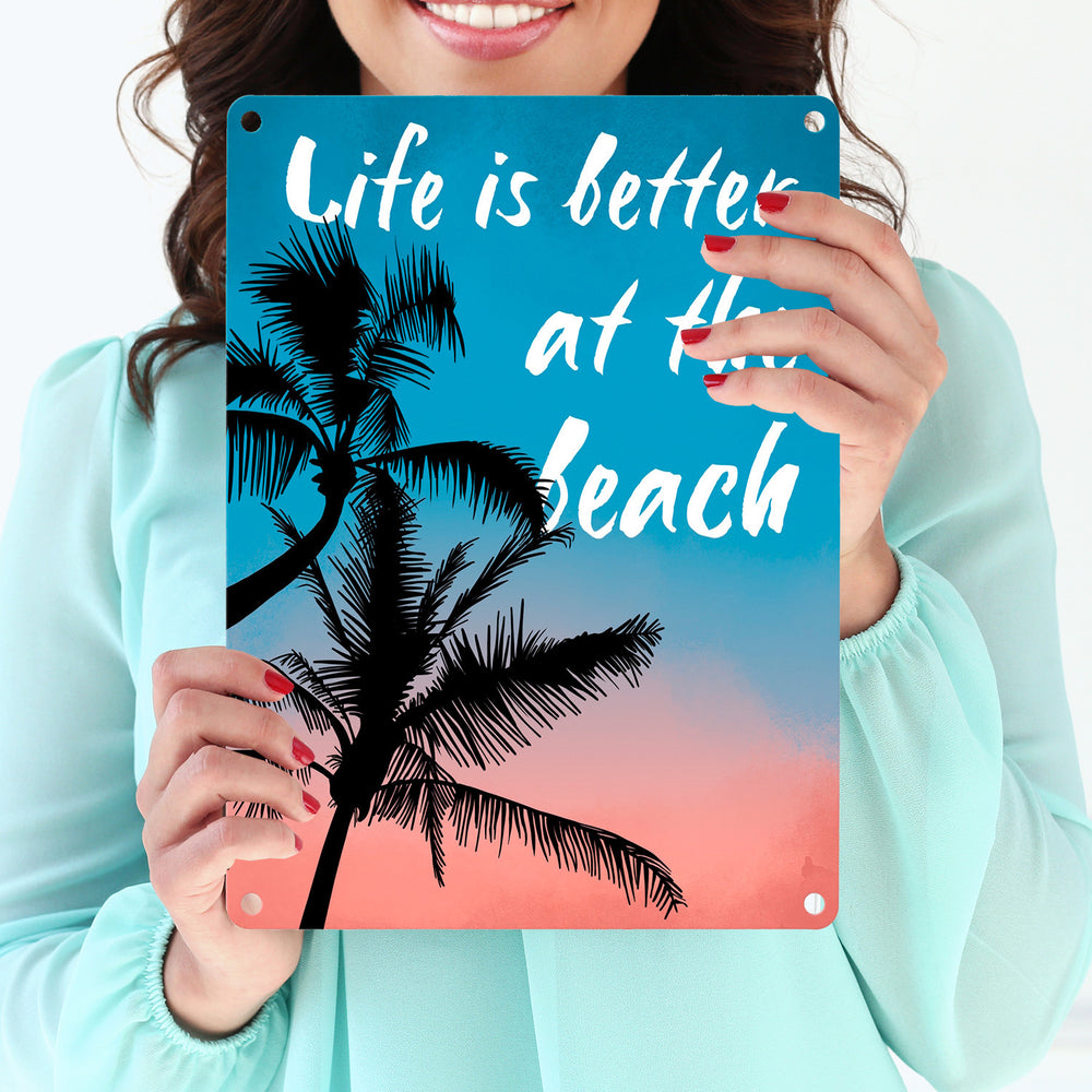 • 1x Life is better at the beach Metallschild mit Palmenmotiv in der gewählten Größe