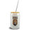 - 1x Löwenkopf Niemals aufgeben Trinkglas mit Bambusdeckel für Motivation mit Bambusdeckel oder Henkel