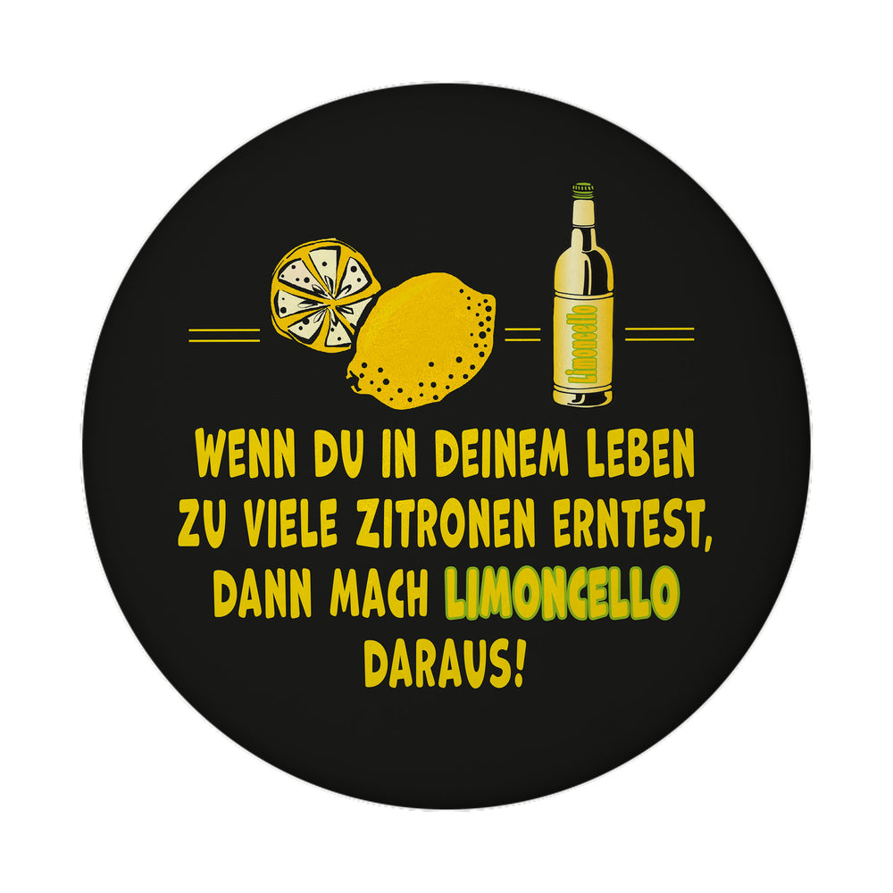 - 1x Magnet rund mit Spruch Limoncello aus Zitronen machen schwarz gelb in der gewählten Ausführung