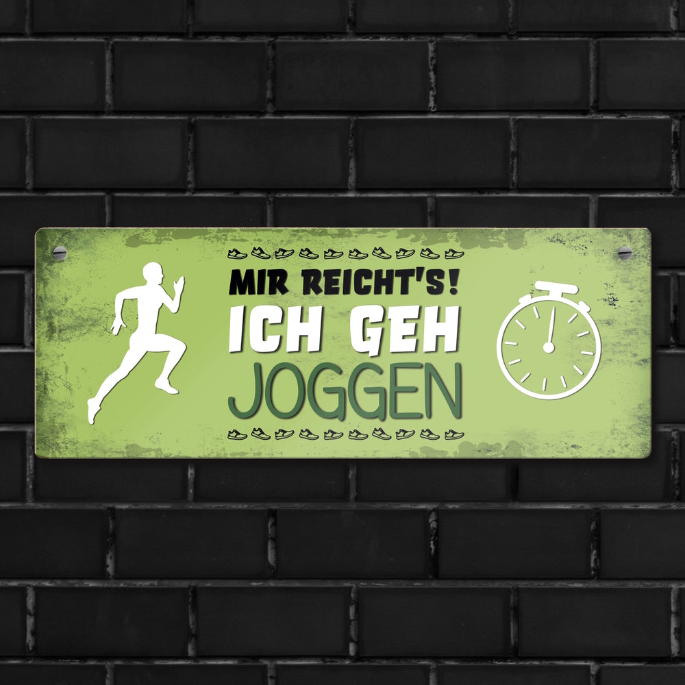 Metallschild mit Spruch: Mir reicht's! Ich geh joggen