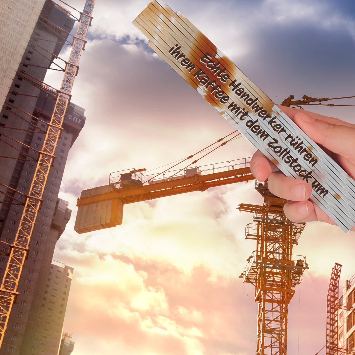 Meterstab aus Holz mit Spruch - Echte Handwerker rühren ihren Kaffee mit dem Zollstock um