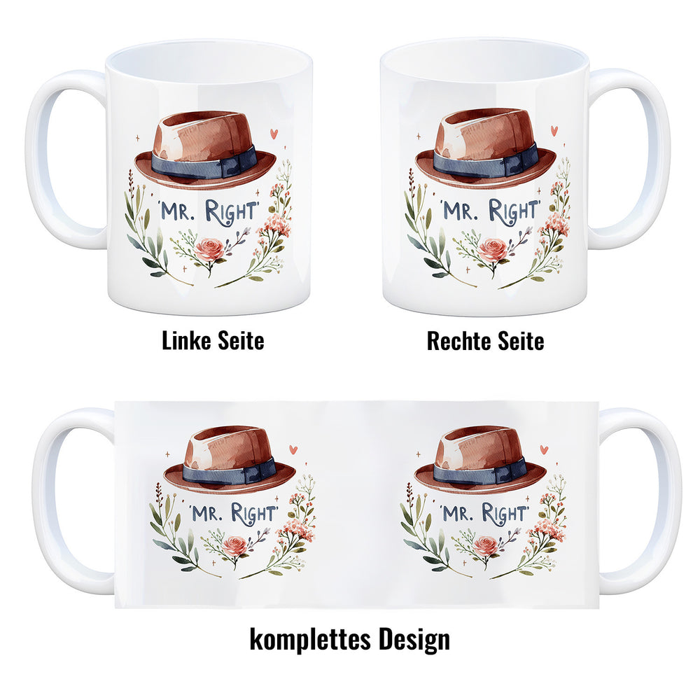 - Sind Sie auf der Suche nach dem Idealpartner oder möchten Ihrem Herrn Richtig zeigen, wie perfekt er ist? Dann ist unser "Mr Right Kaffeebecher" mit seinem zauberhaften Spruch genau das Richtige! Herrlich lebensbejahend – der Becher für den Gentleman, der weiß, wie man Liebe brüht!