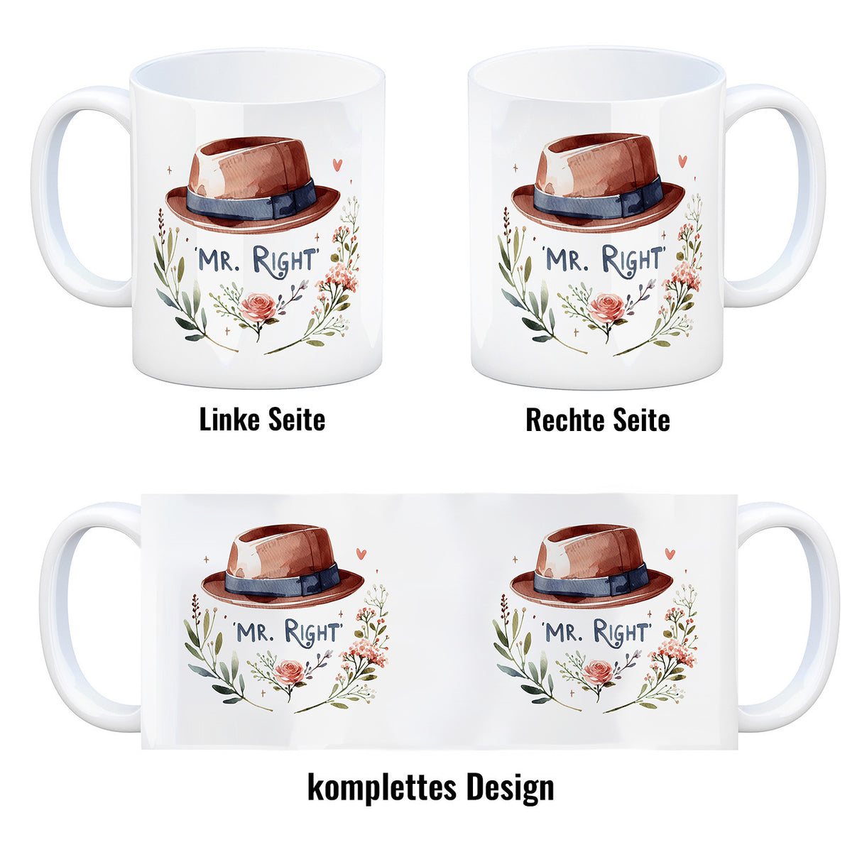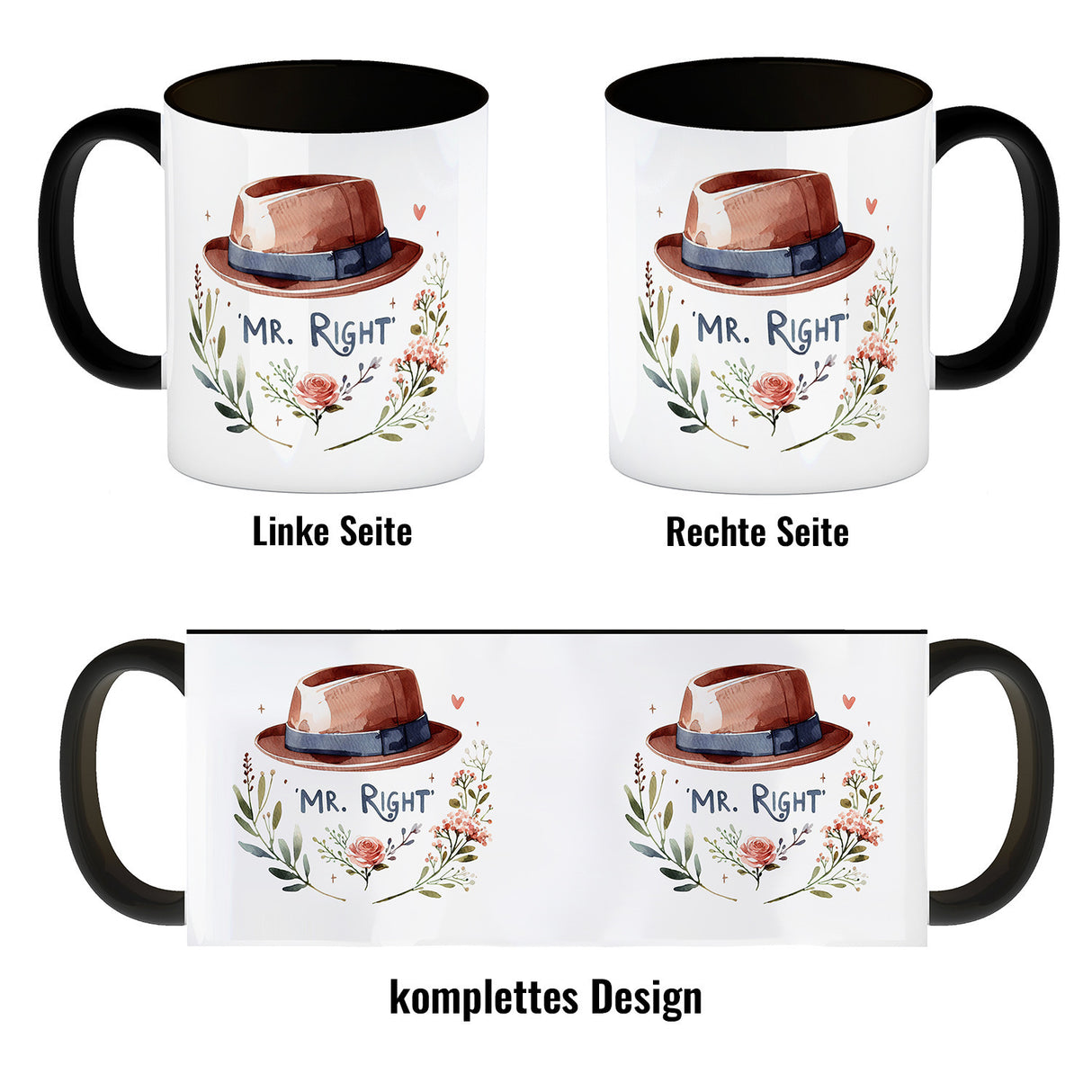 - 1x Mr Right Kaffeebecher in der gewählten Ausführung