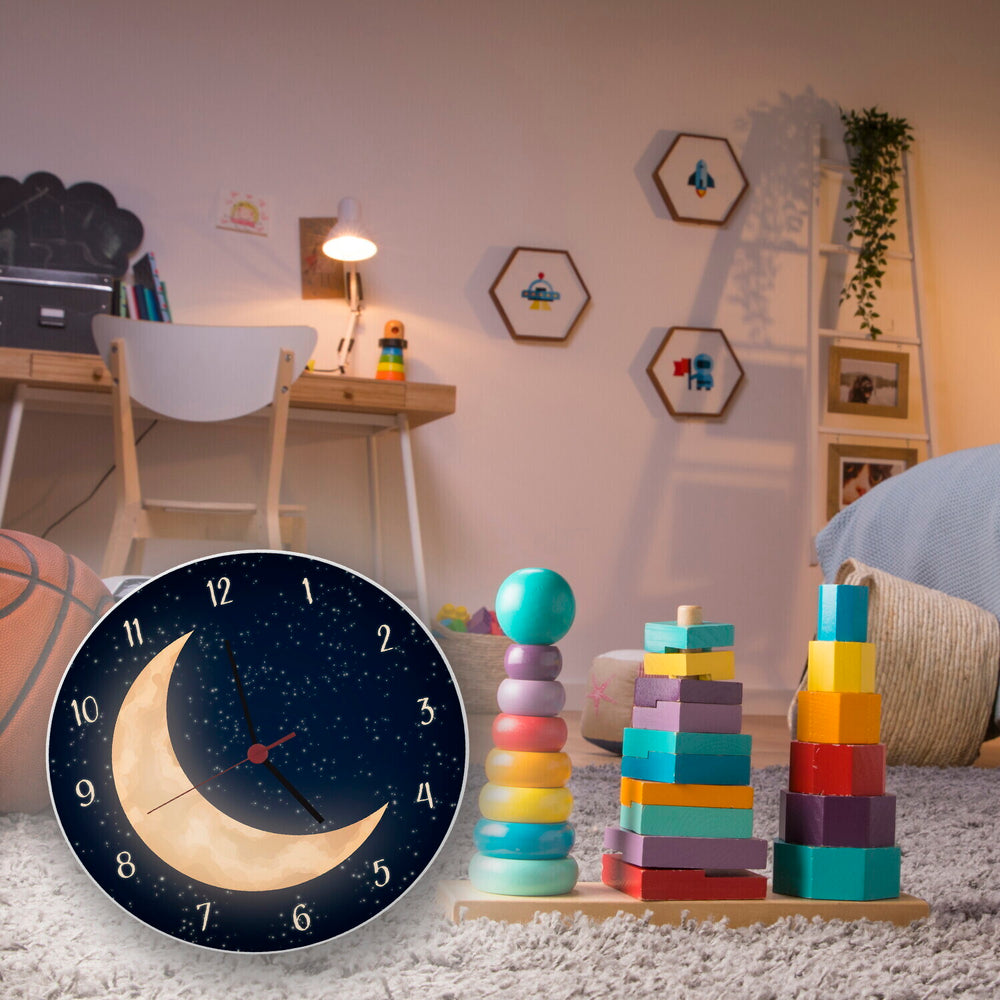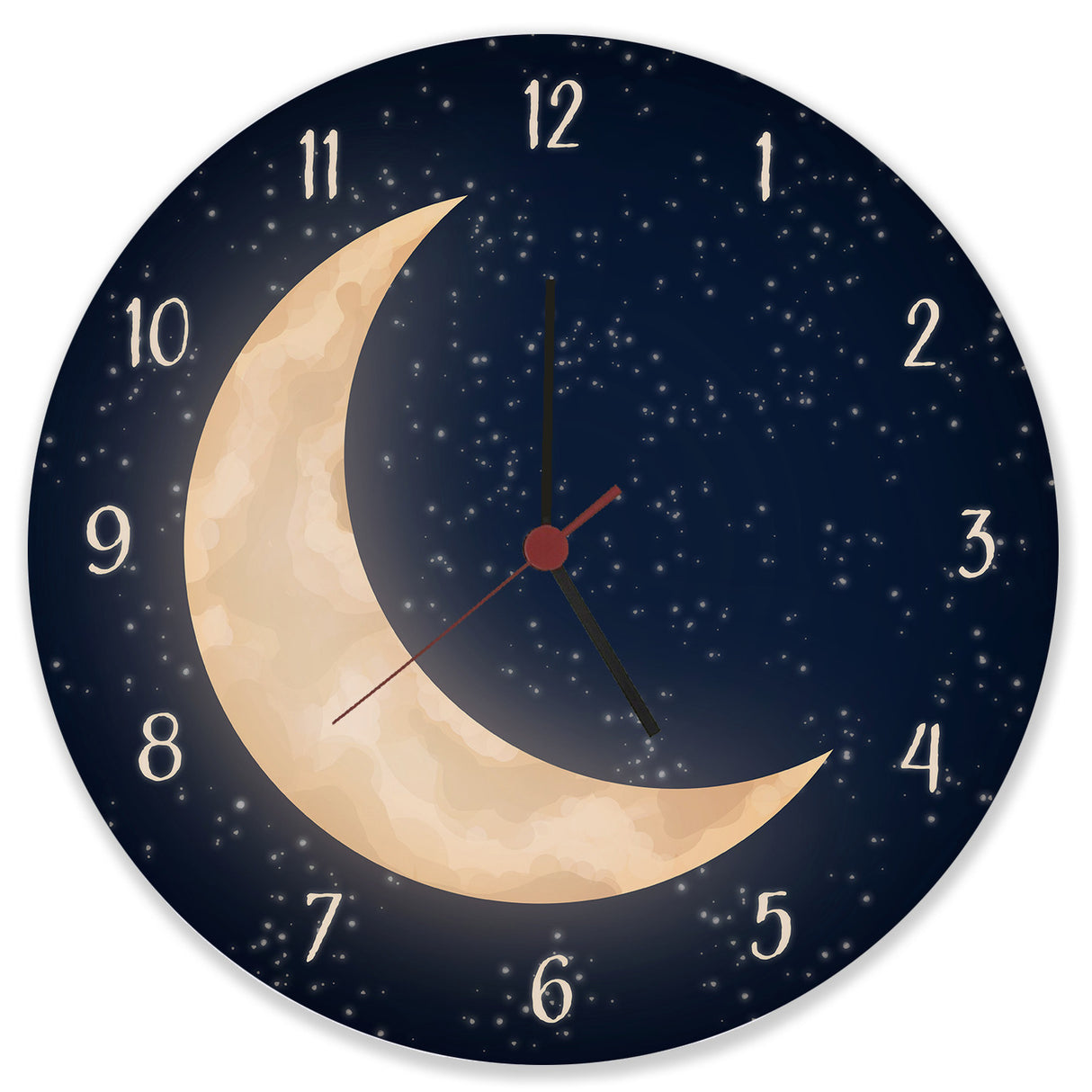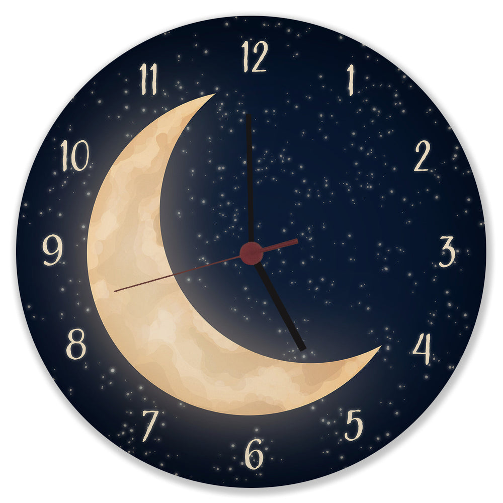 Nachthimmel mit Halbmond Wanduhr - 26,5 cm MDF ist auf Lager und wird versandt, sobald es wieder verfügbar ist