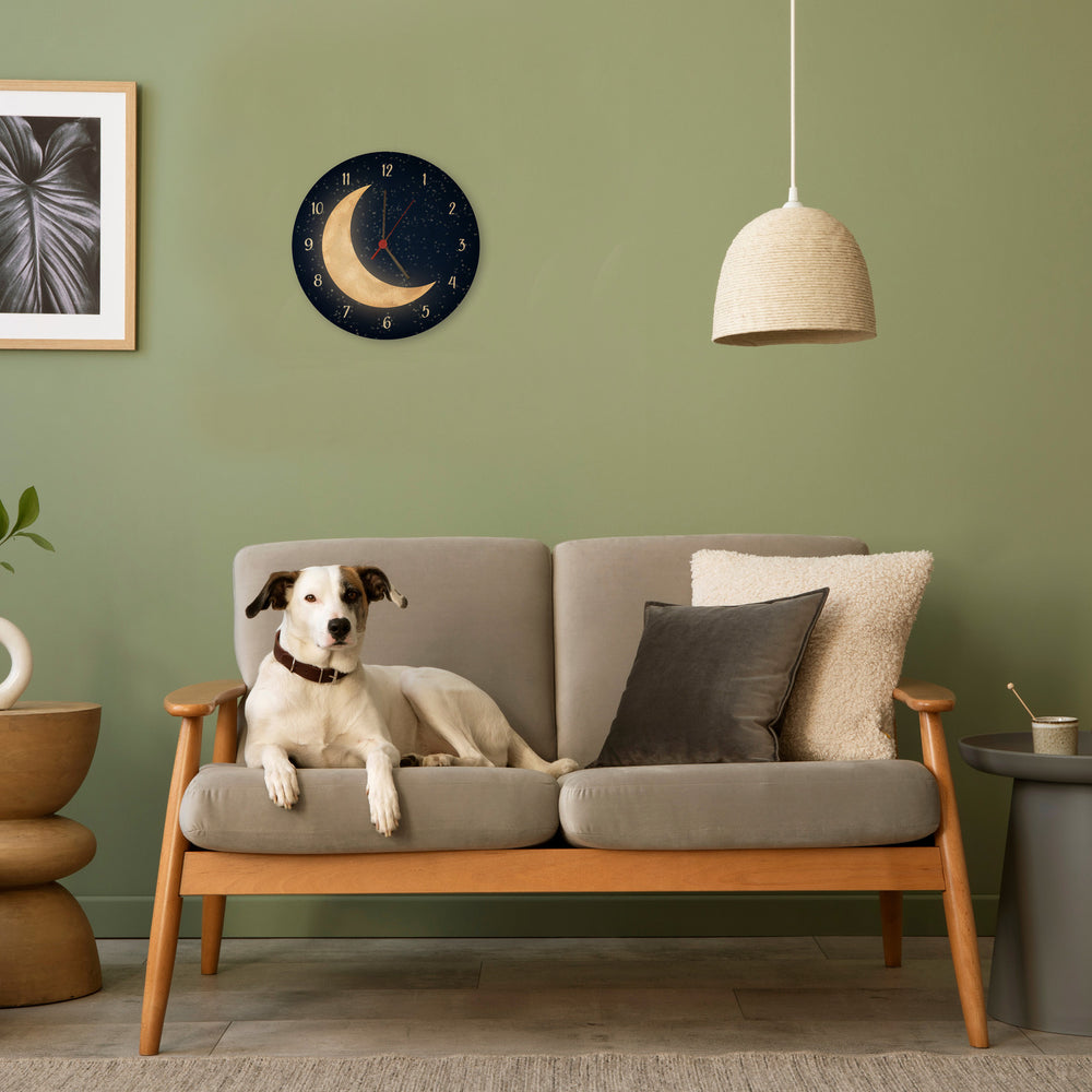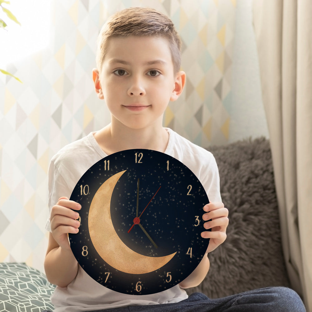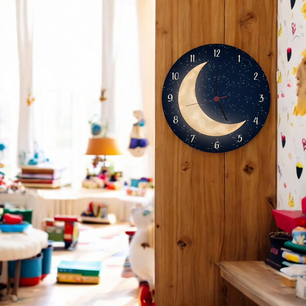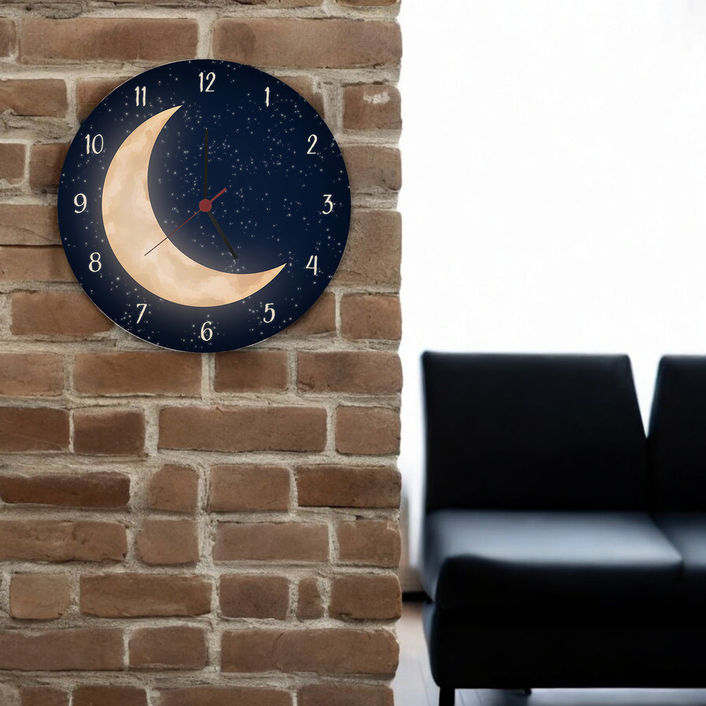 Nachthimmel mit Halbmond Wanduhr - 26,5 cm MDF ist auf Lager und wird versandt, sobald es wieder verfügbar ist