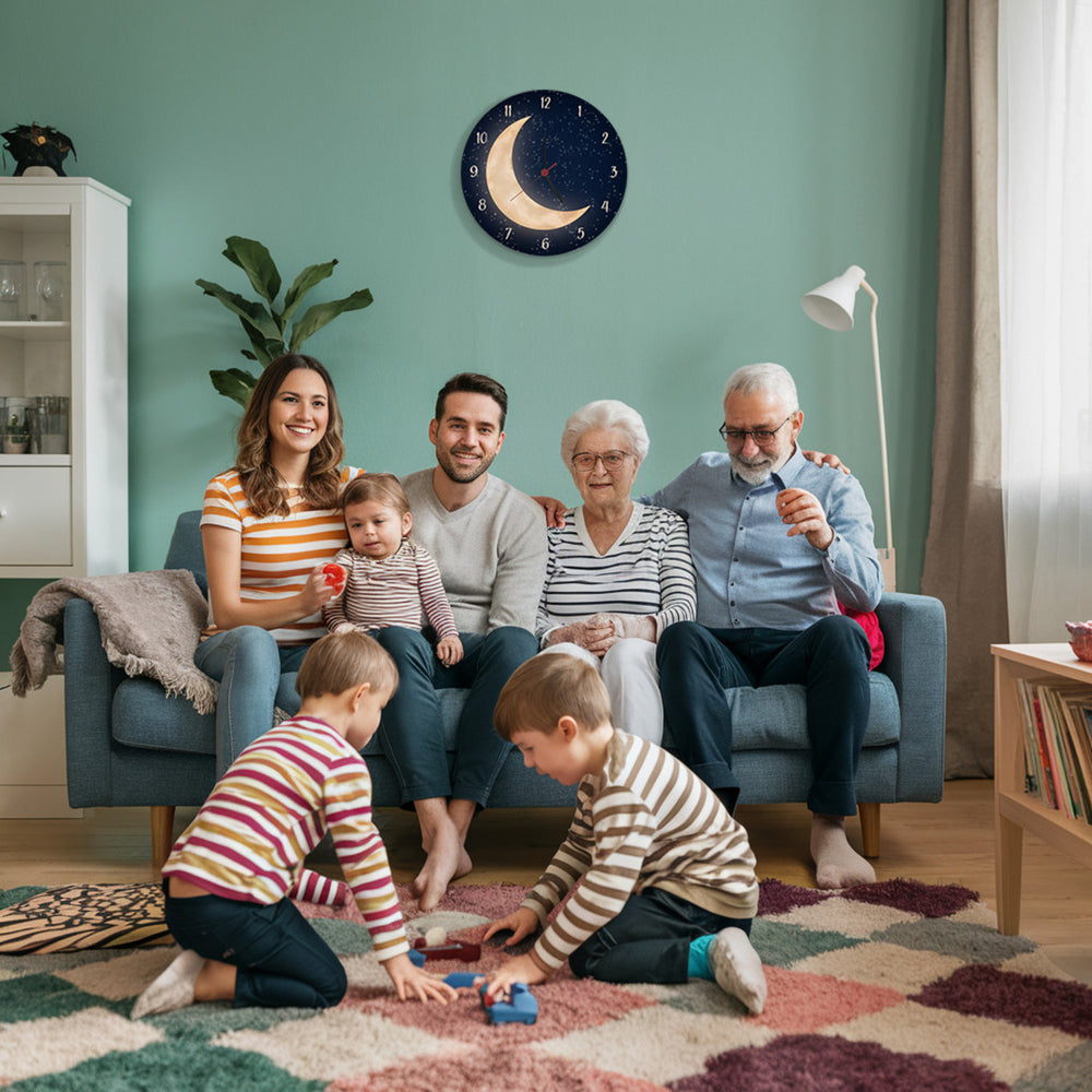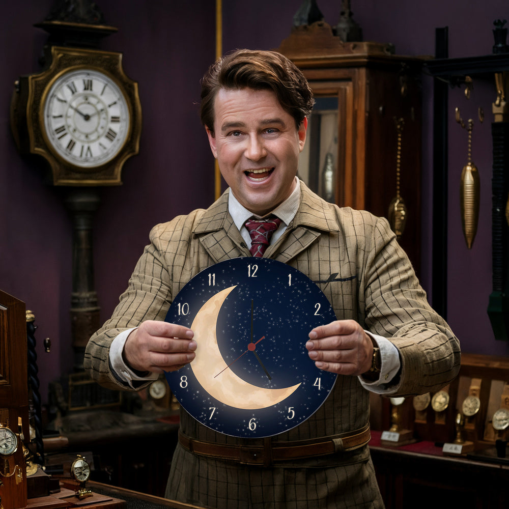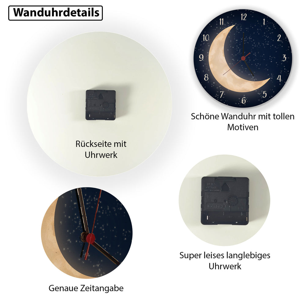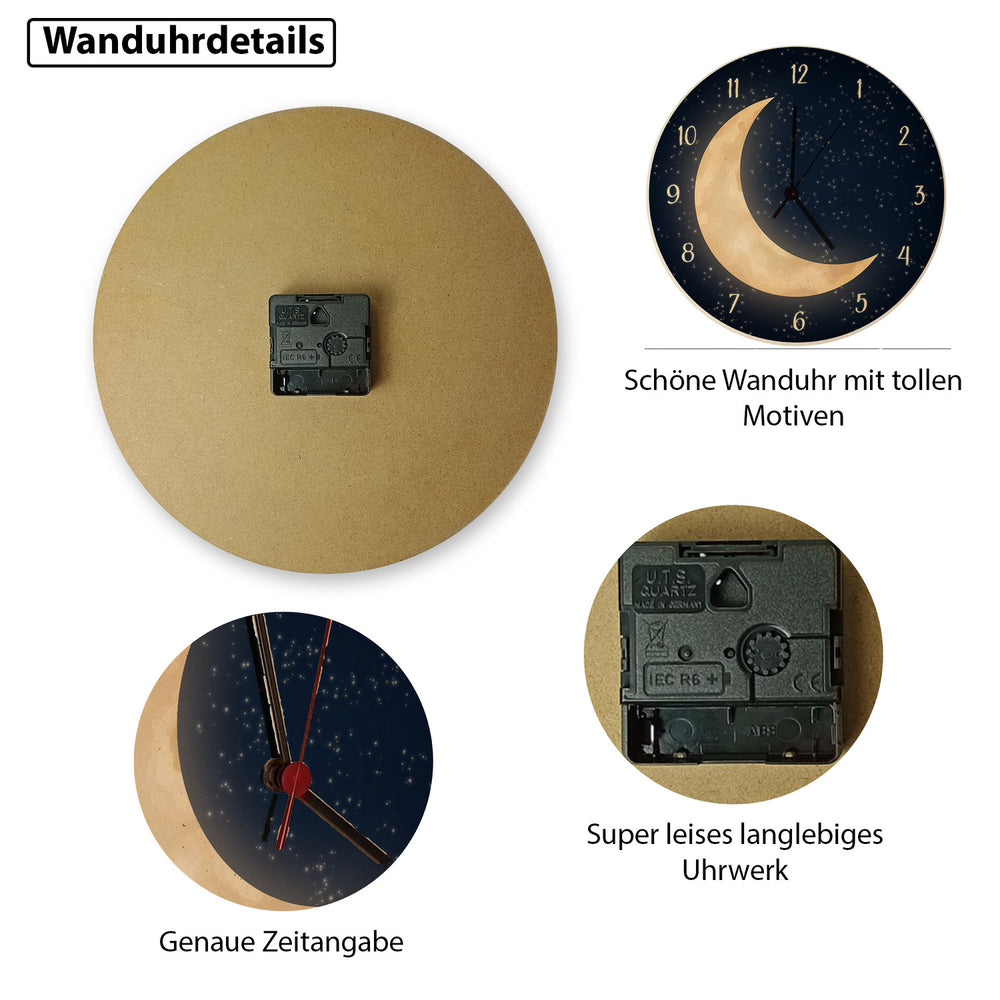 - 1x Nachthimmel mit Halbmond Wanduhr in der gewählten Variante