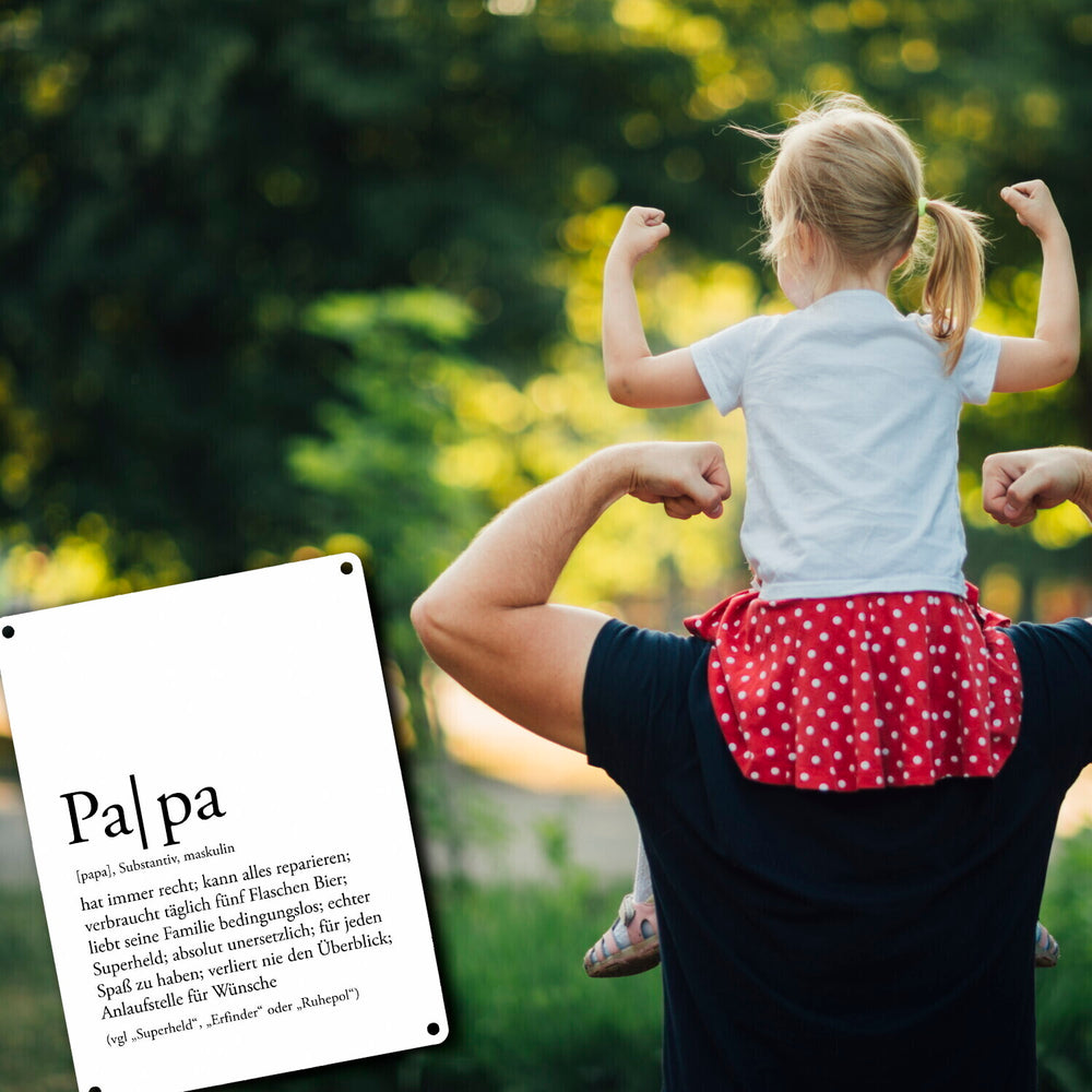 • 1x Papa Metallschild mit lustiger Worterklärung in der gewählten Größe