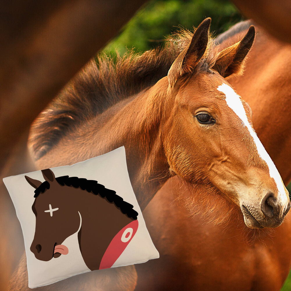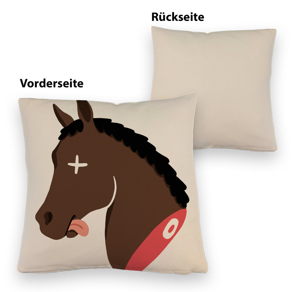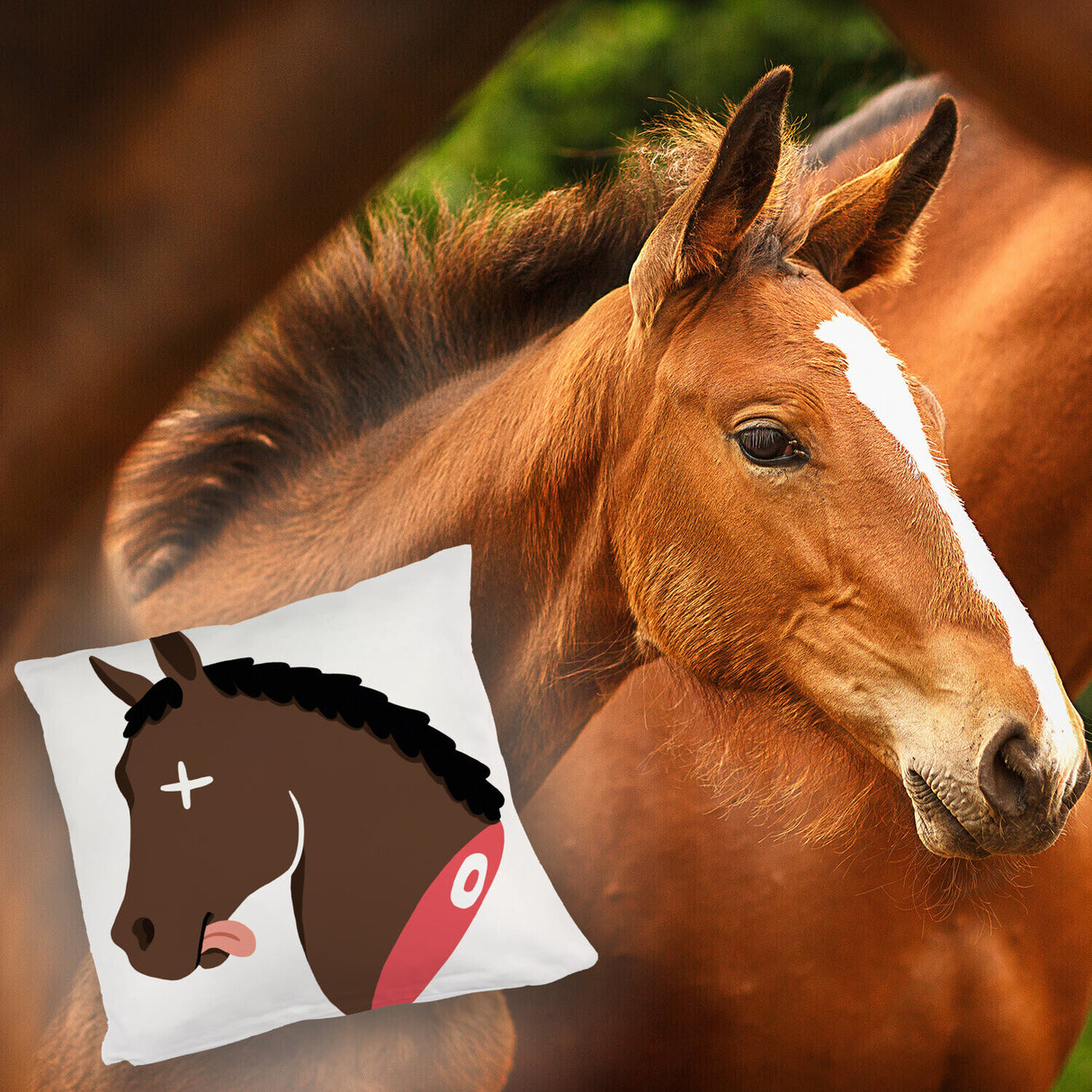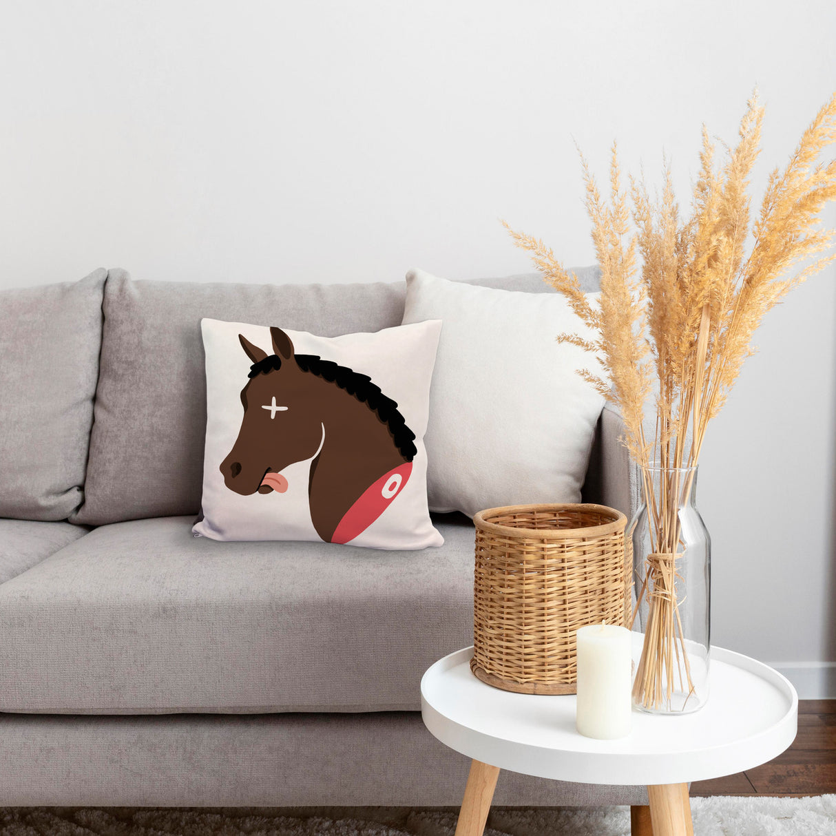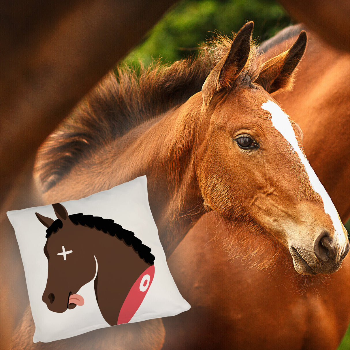 • Das lustige Kissen mit Pferdekopf Motiv ist ein echter Hingucker! Mit seinem Comic-Stil Pferdekopf-Design bringt es einen Hauch von Mafia-Film-Parodie in jedes Wohnzimmer. Ob auf dem Sofa oder dem Bett, dieses Dekokissen ist ein echtes Statement-Stück und perfekt für jeden, der ein bisschen Humor zu schätzen weiß.
