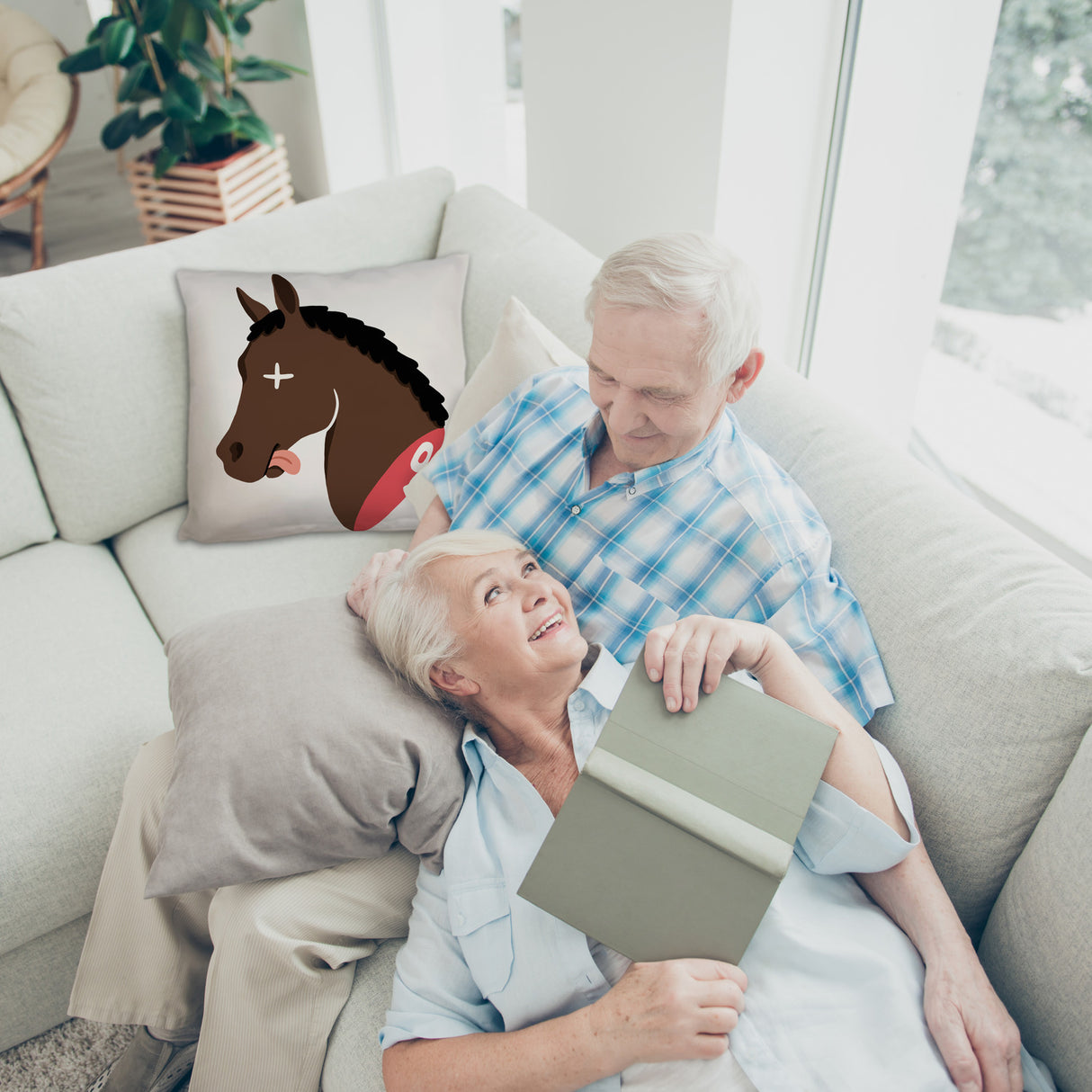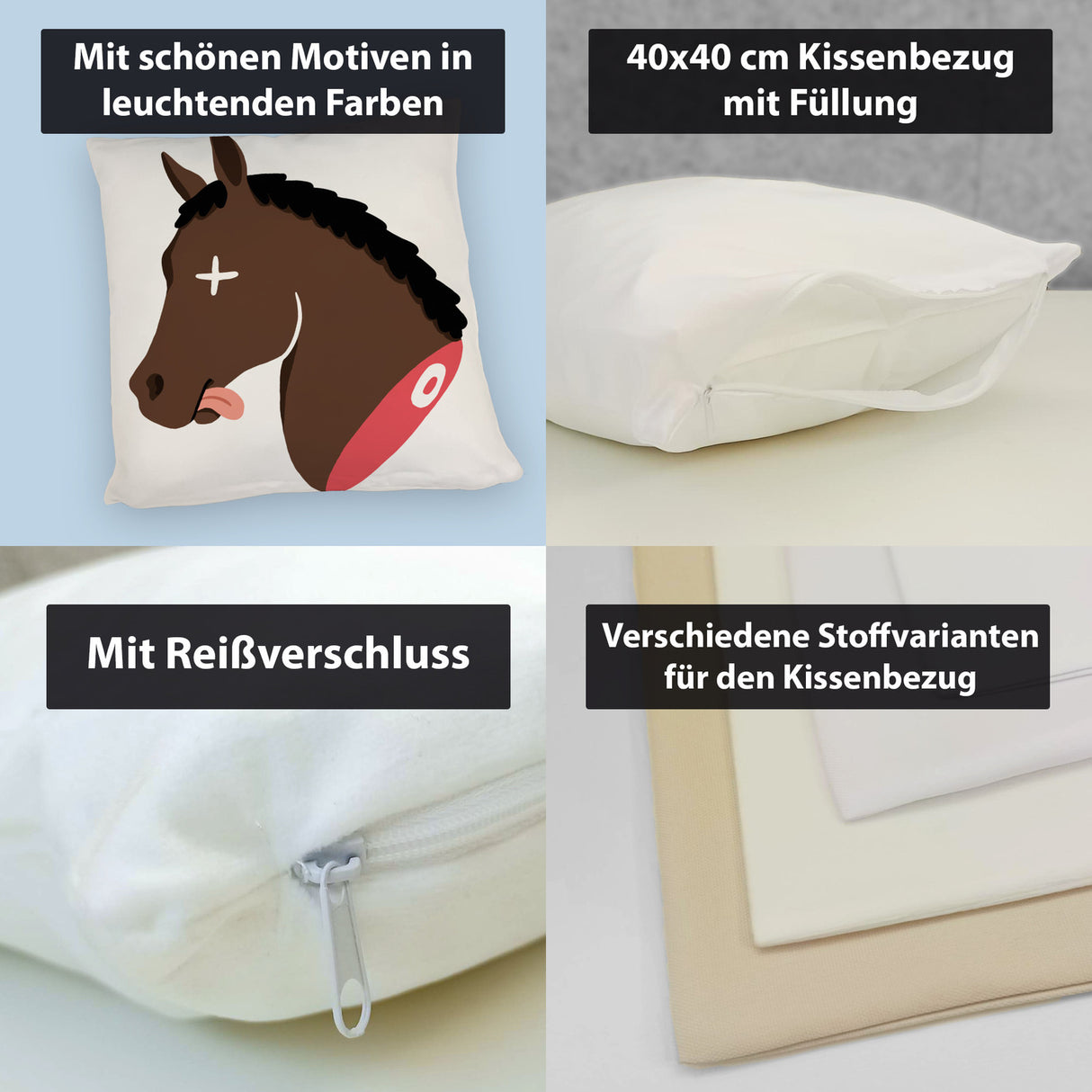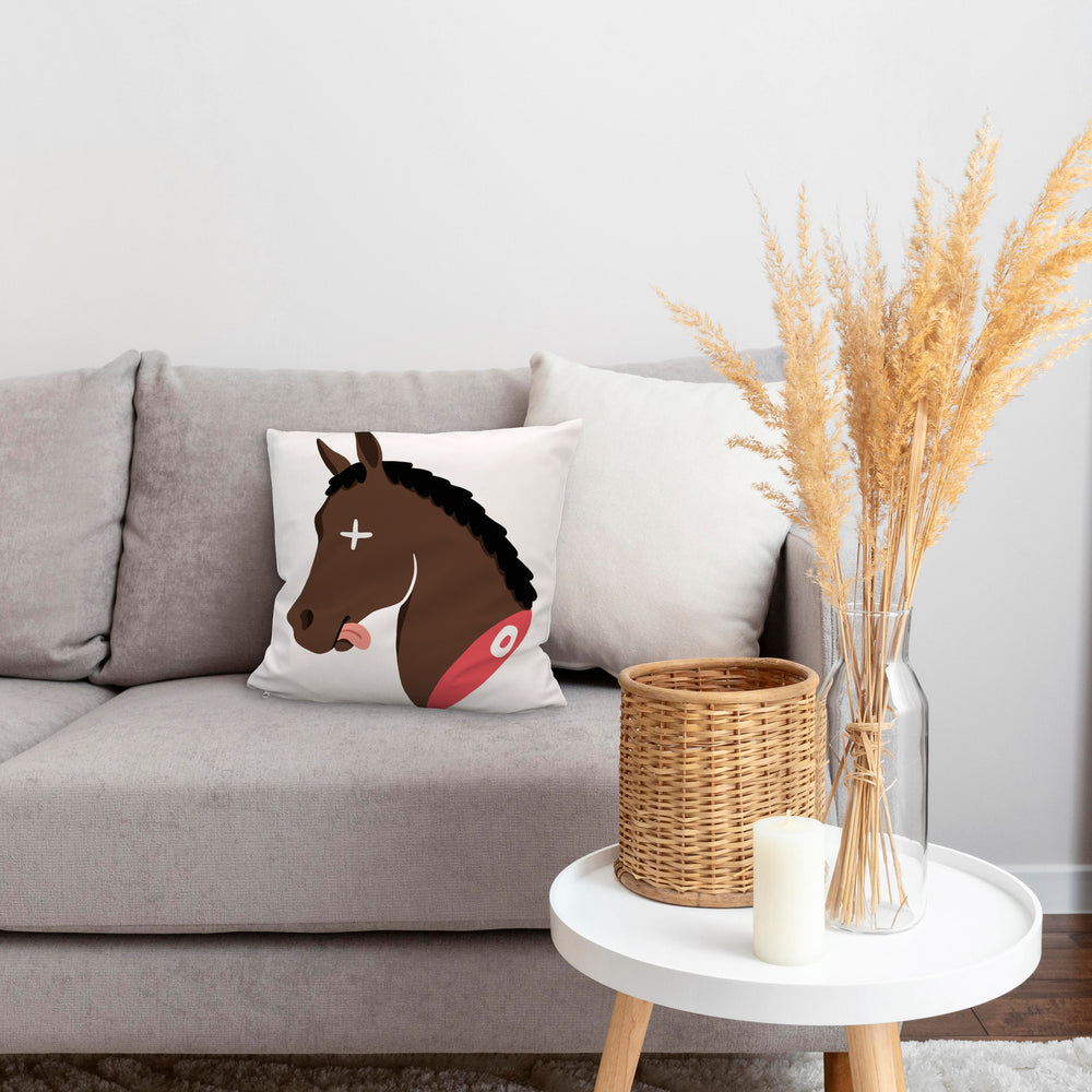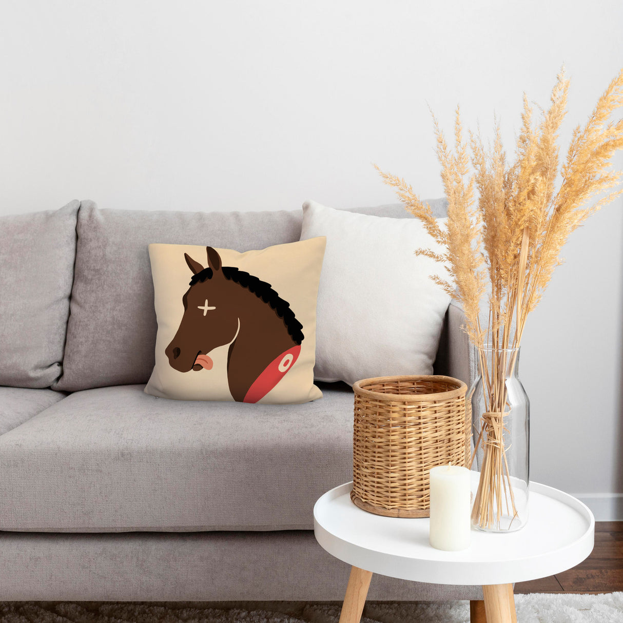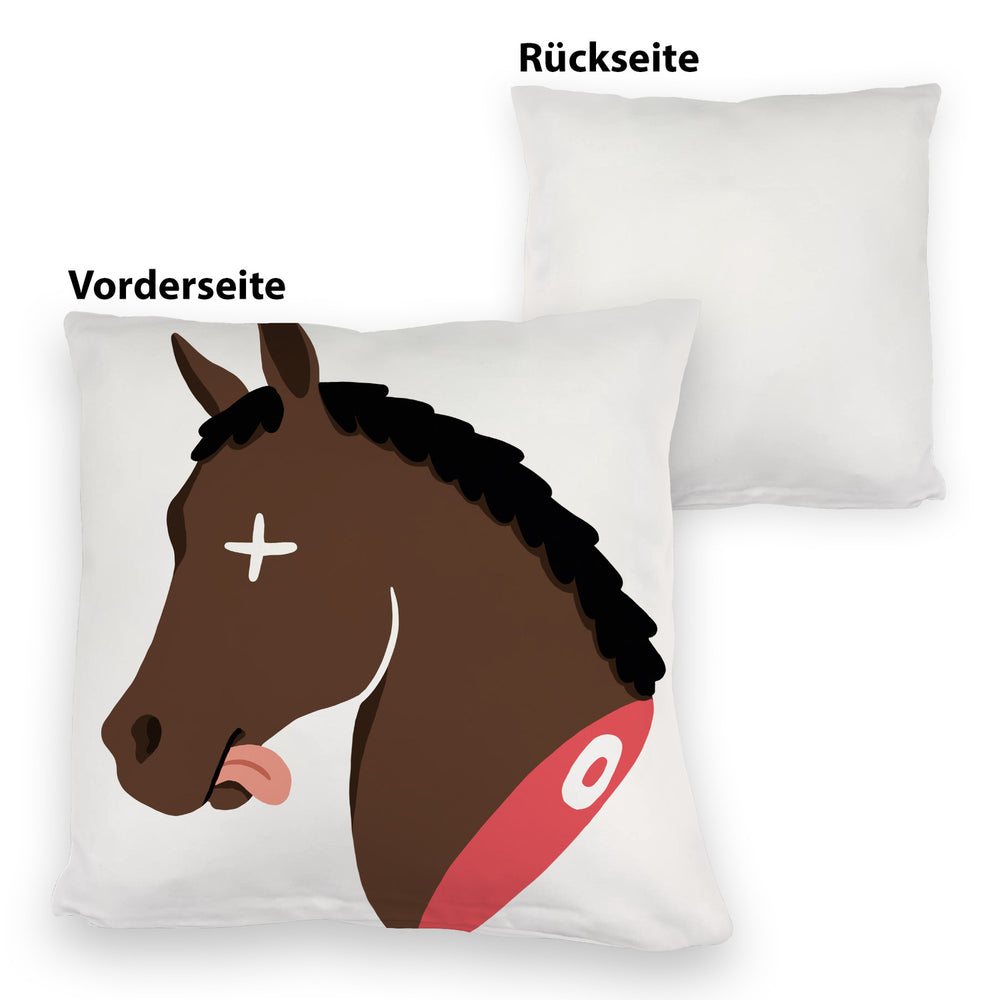 • Das lustige Kissen mit Pferdekopf Motiv ist ein echter Hingucker! Mit seinem Comic-Stil Pferdekopf-Design bringt es einen Hauch von Mafia-Film-Parodie in jedes Wohnzimmer. Ob auf dem Sofa oder dem Bett, dieses Dekokissen ist ein echtes Statement-Stück und perfekt für jeden, der ein bisschen Humor zu schätzen weiß.