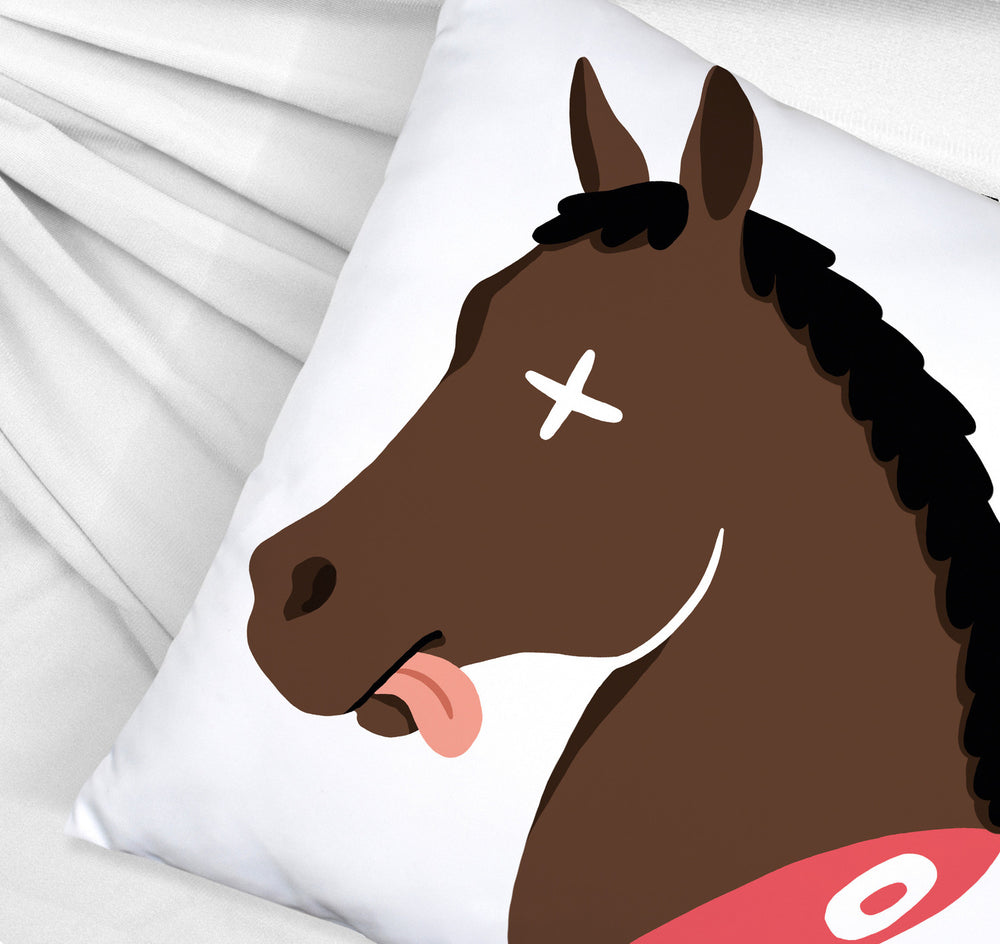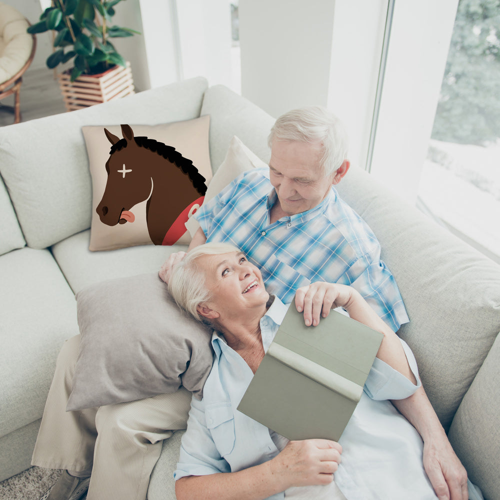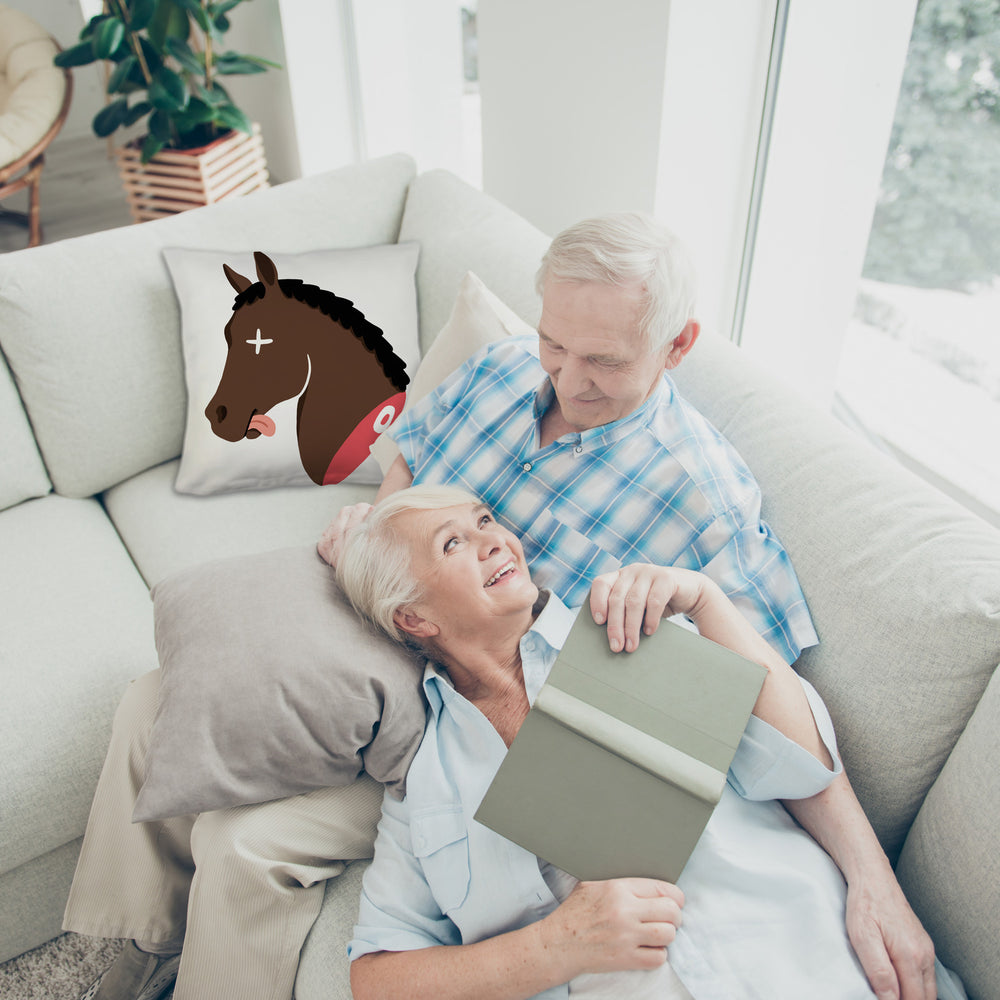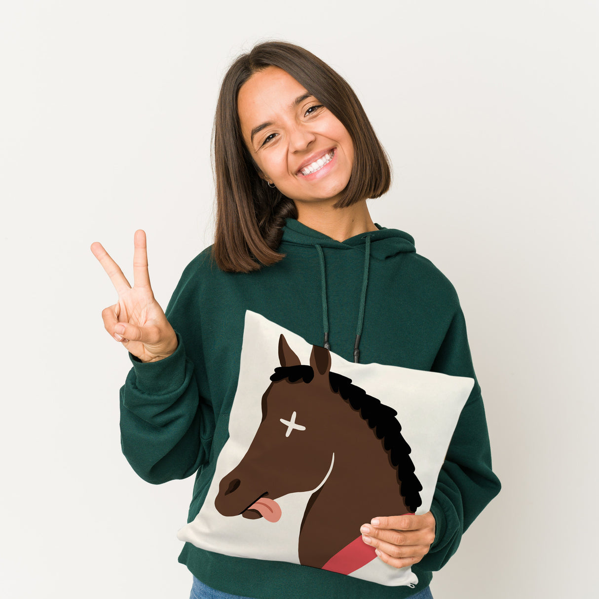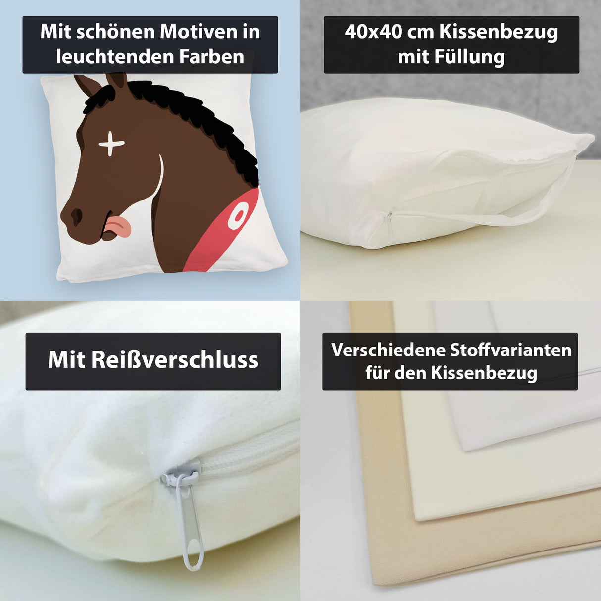 • Das lustige Kissen mit Pferdekopf Motiv ist ein echter Hingucker! Mit seinem Comic-Stil Pferdekopf-Design bringt es einen Hauch von Mafia-Film-Parodie in jedes Wohnzimmer. Ob auf dem Sofa oder dem Bett, dieses Dekokissen ist ein echtes Statement-Stück und perfekt für jeden, der ein bisschen Humor zu schätzen weiß.