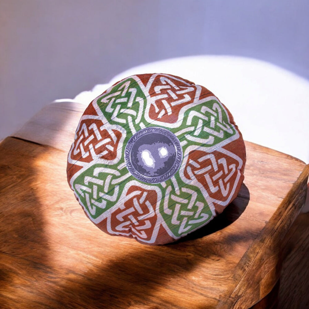 • Dieses Kissen ist wie kein anderes – es ist designt als ein echter Wikinger Rundschild! Mit zwei Kreuzen in antikem Stil und handlichen Griffen auf der Rückseite fühlst du dich wie ein echter Krieger. Perfekt als Deko oder für eine historische Kostümparty. Mach dich bereit, nordische Schlachten zu schlagen!