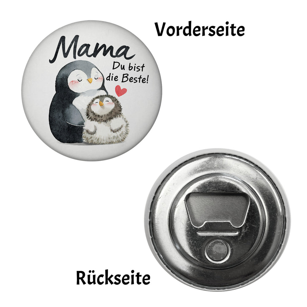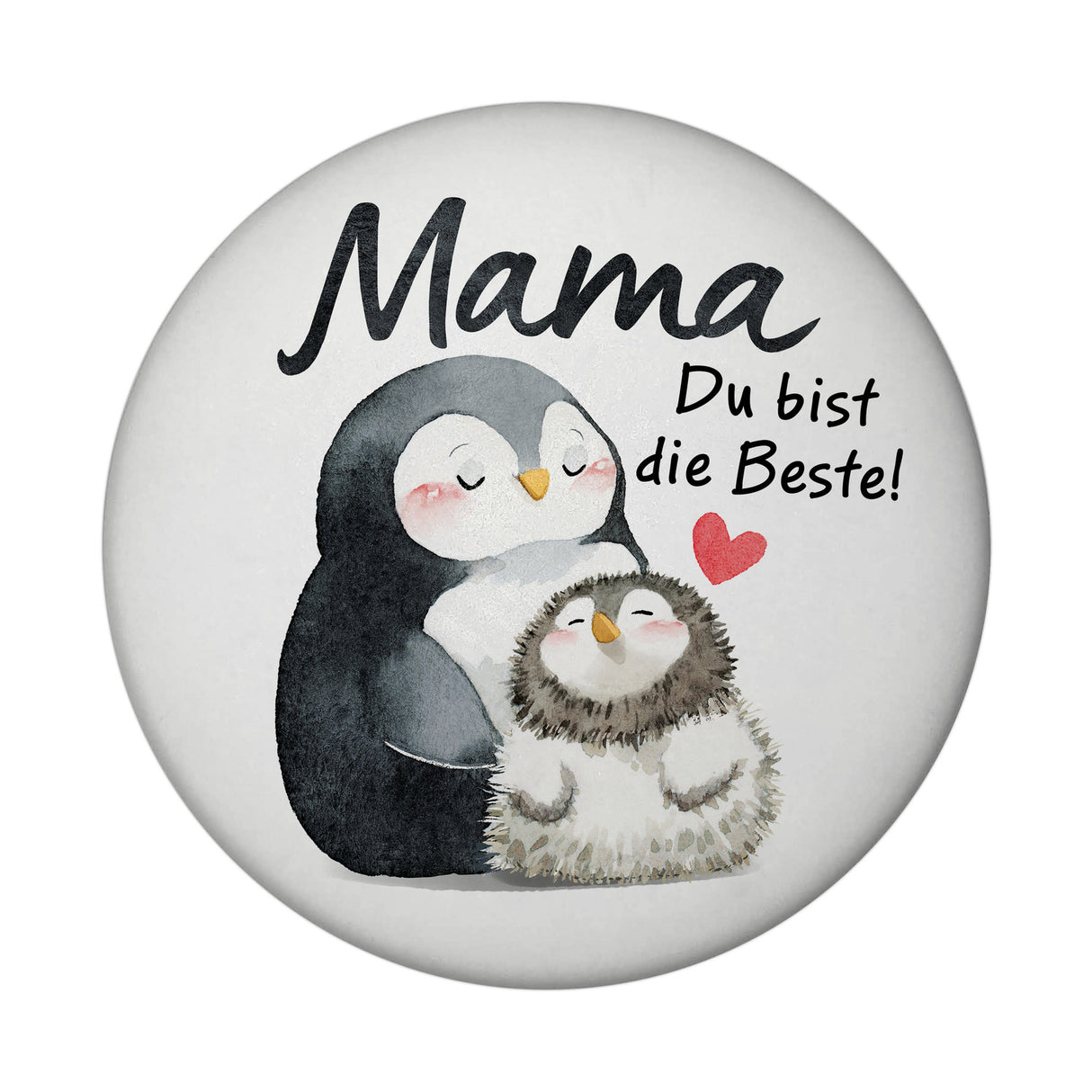 • 1x Pinguin Mutter und Kind Magnet rund mit Spruch Mama du bist die Beste in der gewählten Ausführung