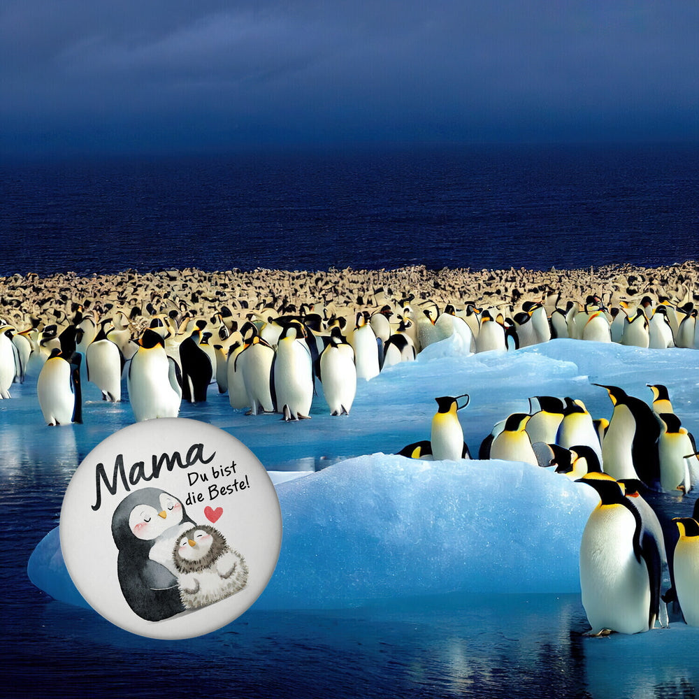 Pinguin Mutter und Kind Magnet rund mit Spruch Mama du bist die Beste