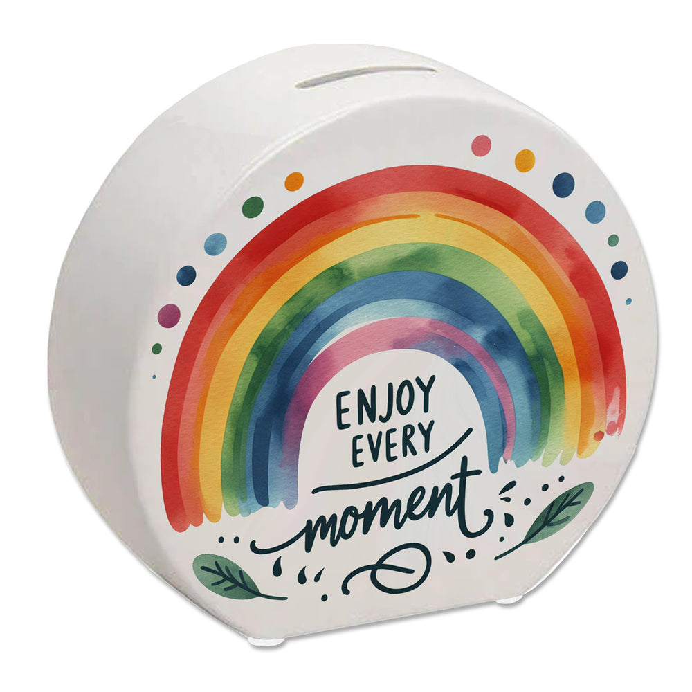 Regenbogen Spardose mit Spruch Enjoy every moment - Keramik ist auf Lager und wird versandt, sobald es wieder verfügbar ist