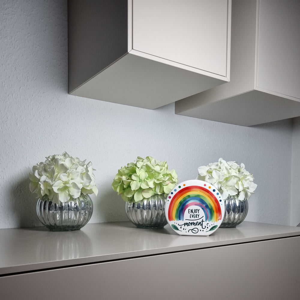 Regenbogen Blumentopf mit Spruch Enjoy every moment