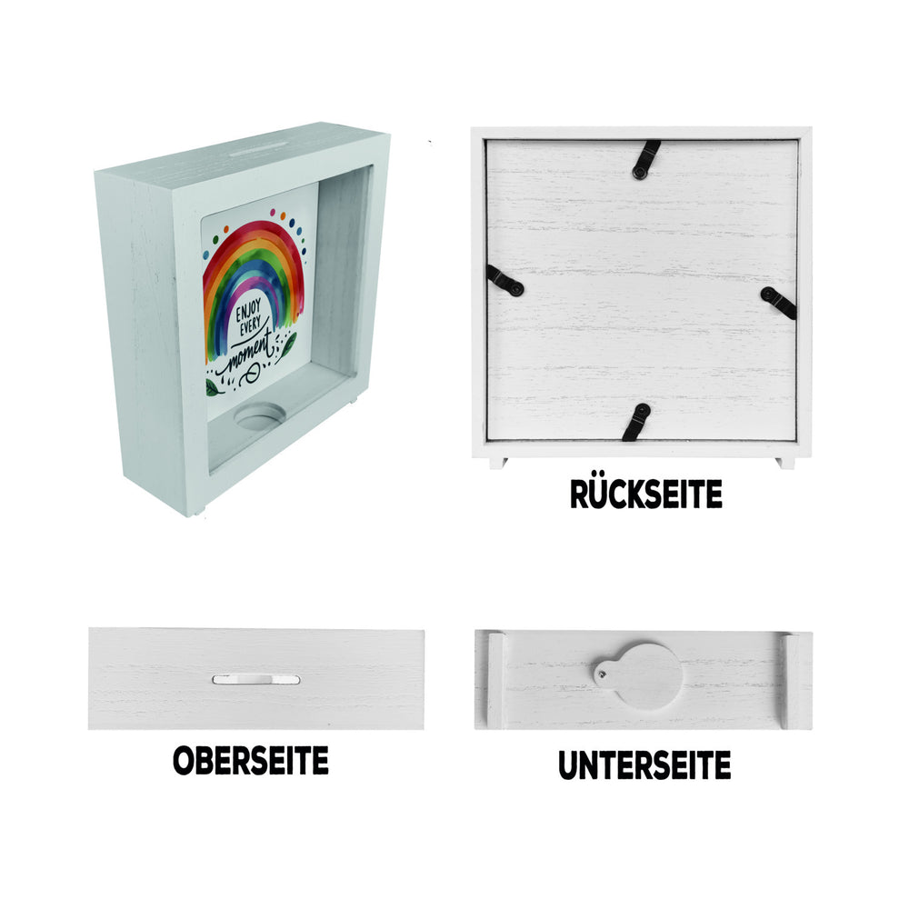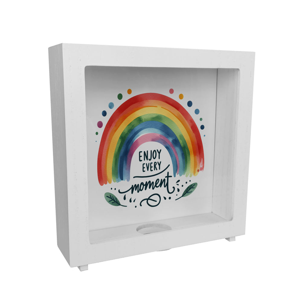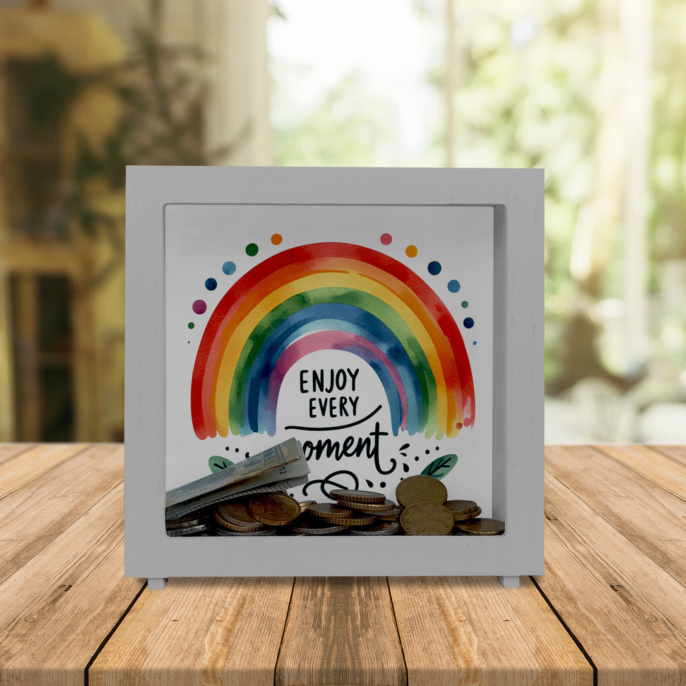 - 1x Regenbogen Spardose mit Spruch Enjoy every moment in der gewählten Ausführung