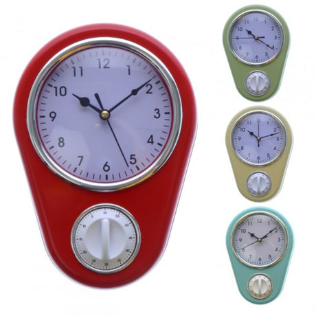 Retro Wanduhr mit Eieruhr für die Küche ist auf Lager und wird versandt, sobald es wieder verfügbar ist