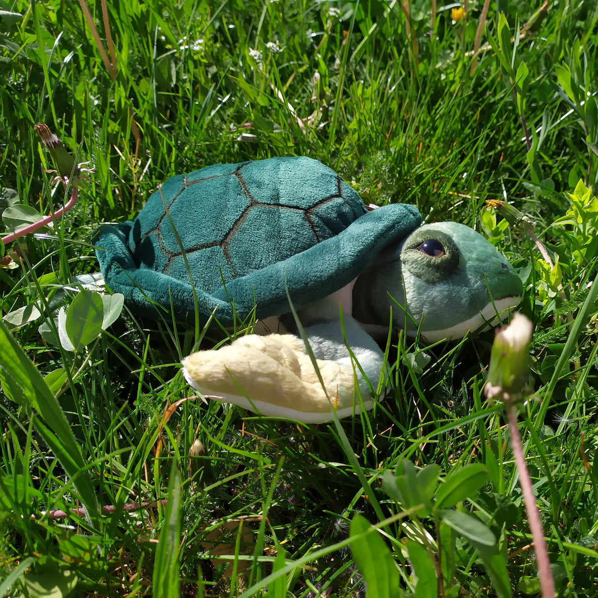 • Im Lieferumfang befindet sich neben dem Plüschtier auch ein Infoblatt mit Fakten über die Lebensweise der Schildkröte.