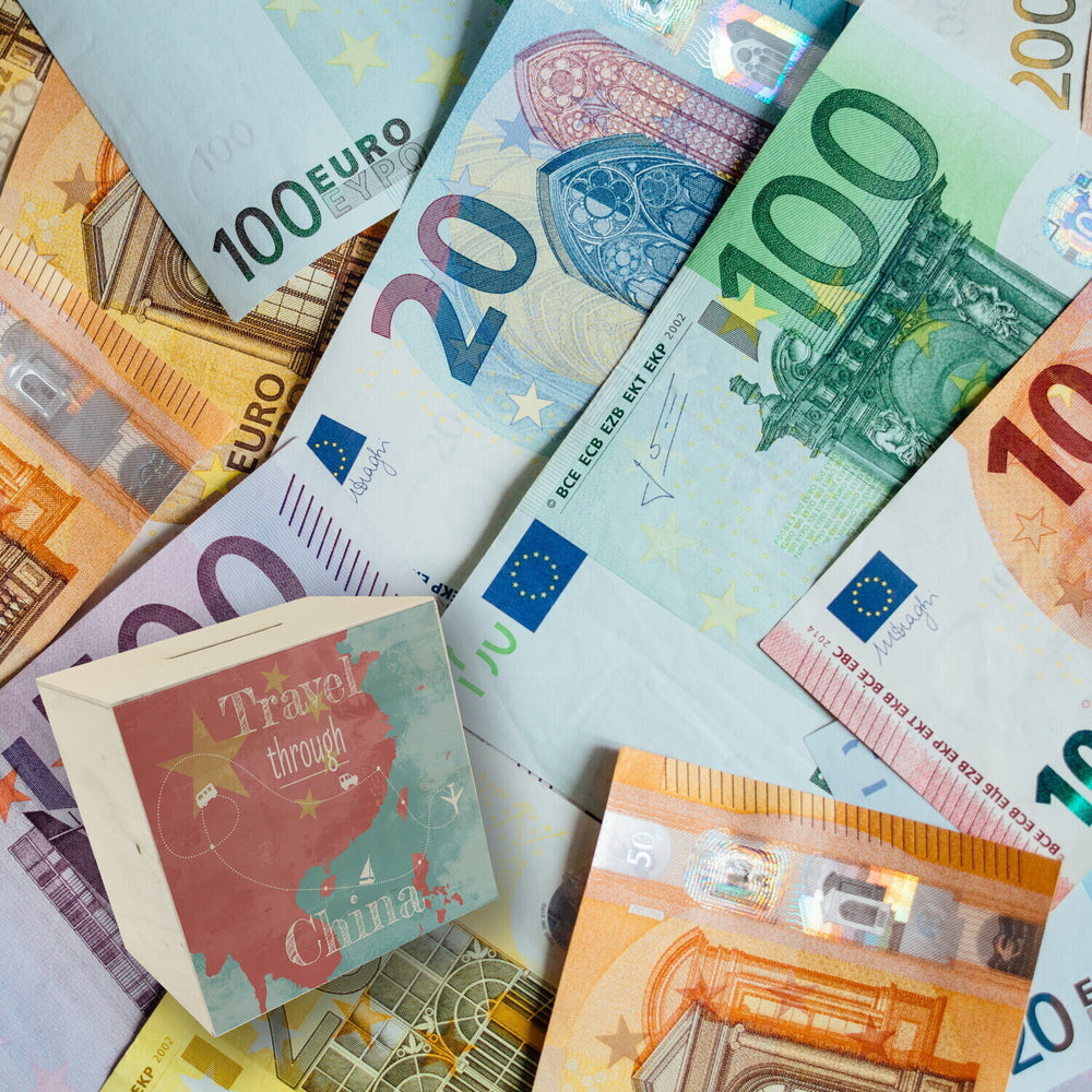 Spardose mit Europa Karte und Spruch - travel through Europa