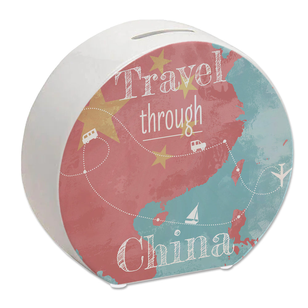 • 1x Spardose mit China Karte und Spruch - travel through China in der gewählten Ausführung