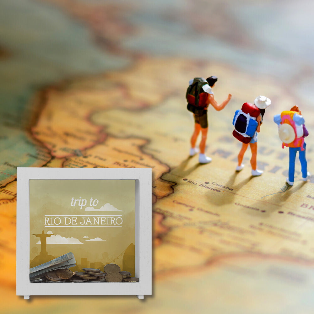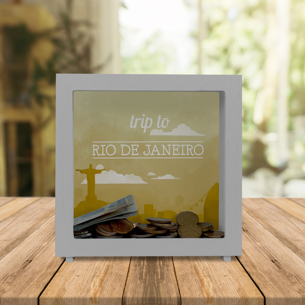 - 1x Spardose mit schönem Motiv und Text - Trip to Rio de Janeiro in der gewählten Ausführung