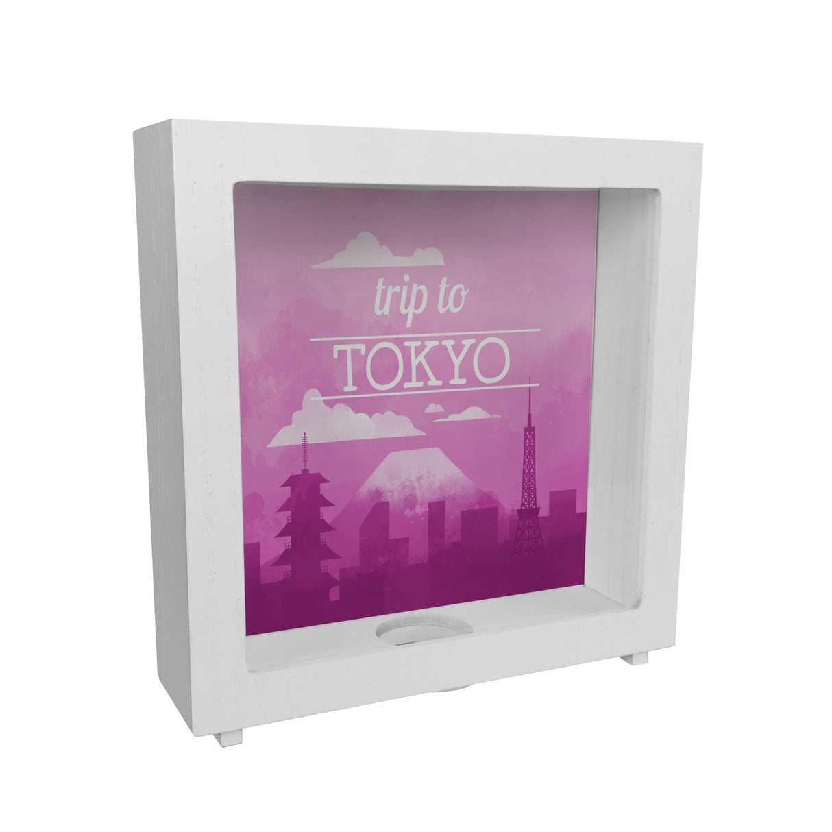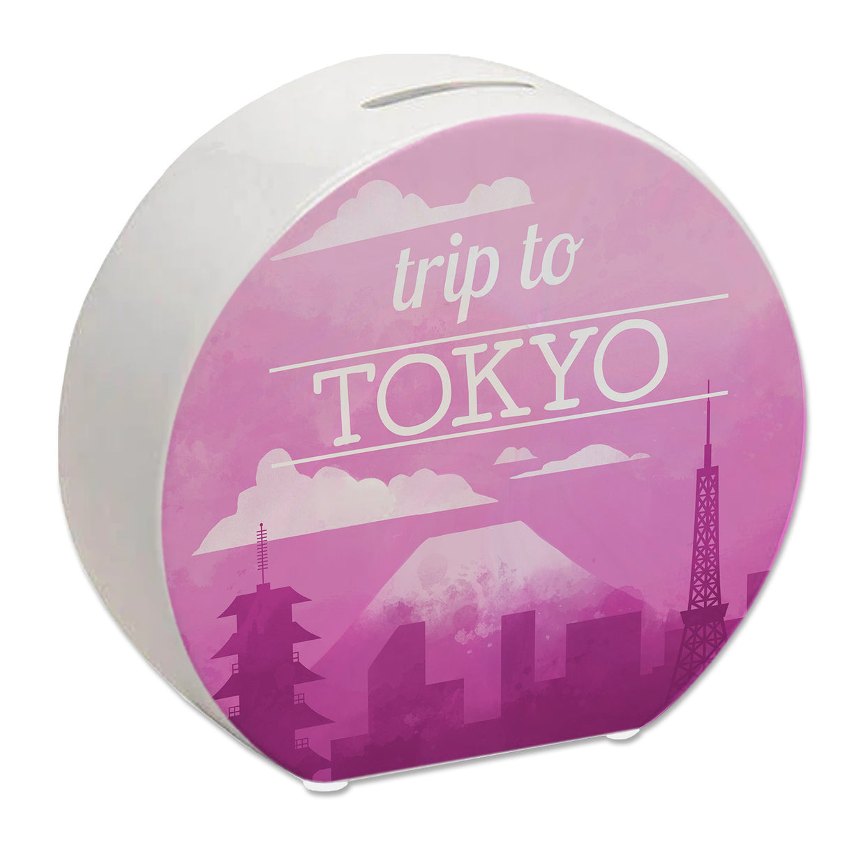 • 1x Spardose mit schönem Motiv und Text - Trip to Tokyo in pink in der gewählten Ausführung