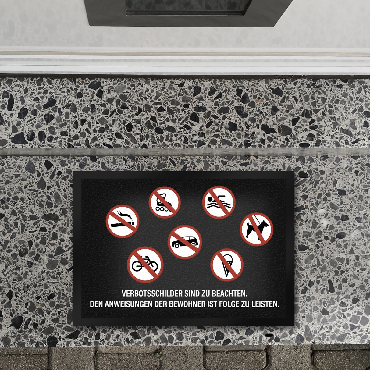 - 1x Verbotsschilder sind zu beachten Fußmatte in der gewählten Größe