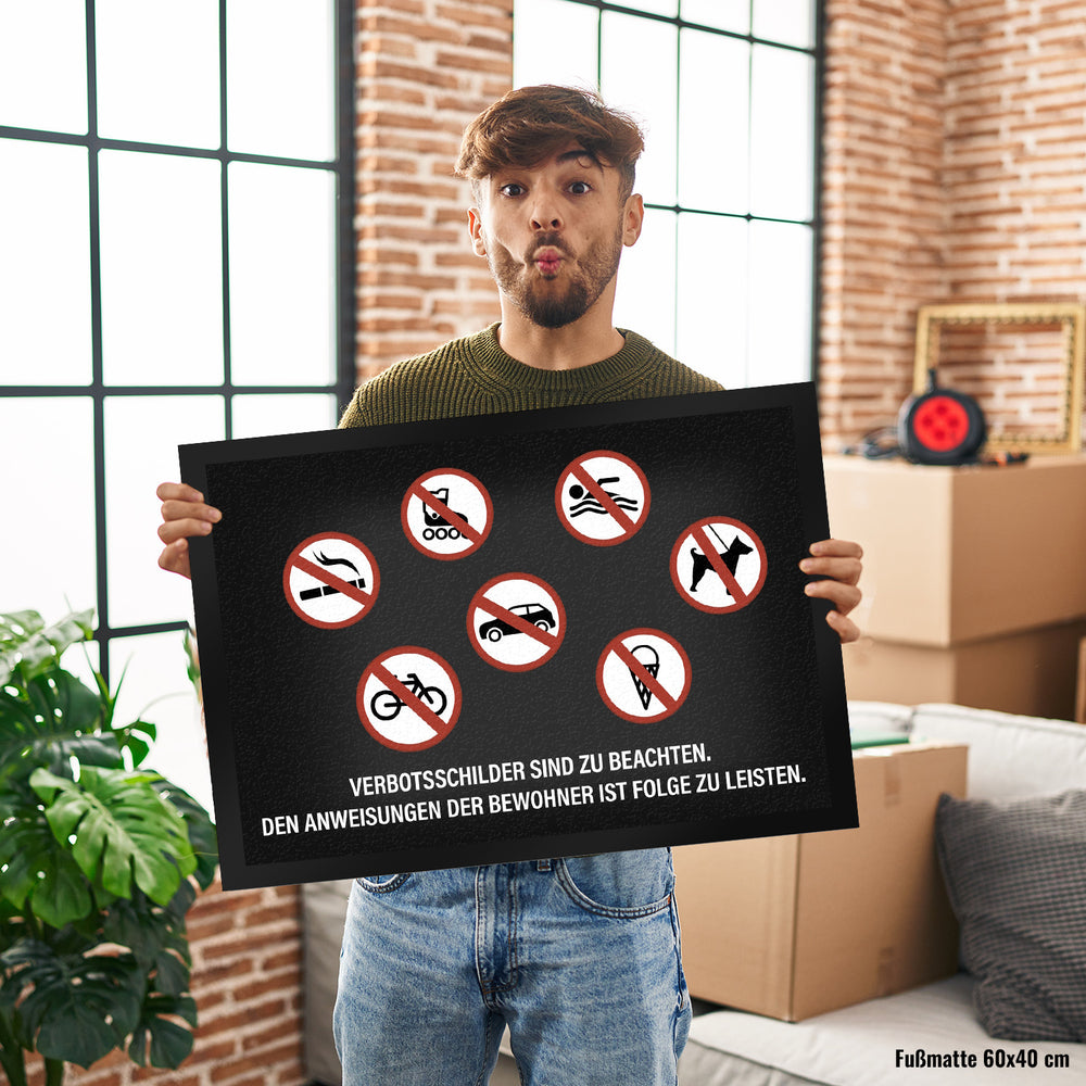 Verbotsschilder sind zu beachten Fußmatte