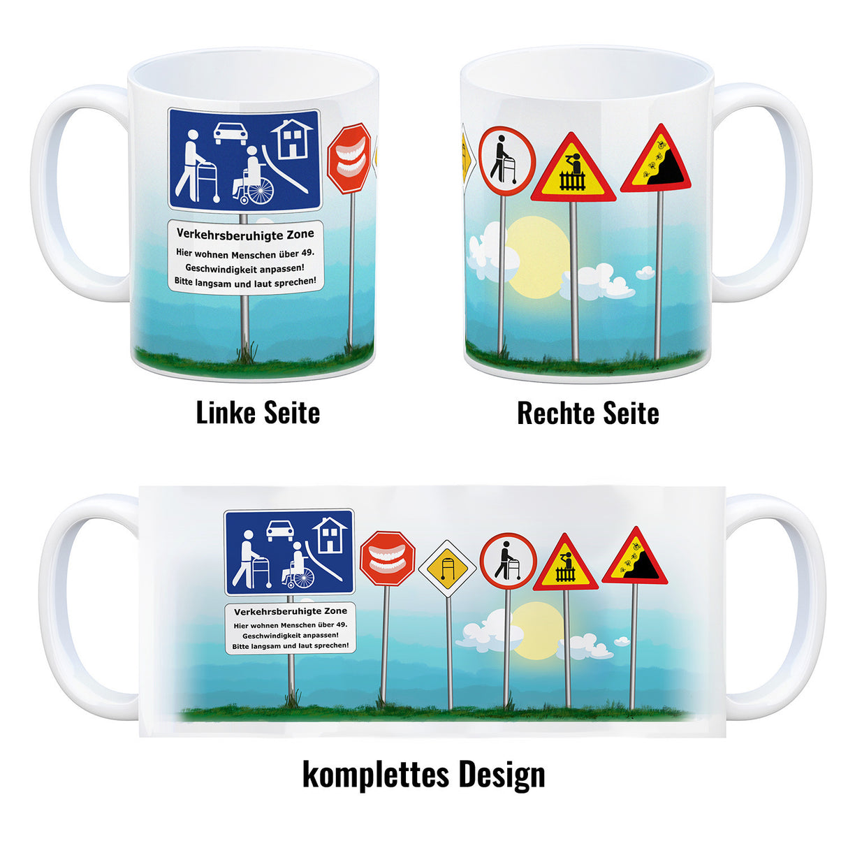 • Lieferumfang: 1x Verkehrsberuhigte Zone Kaffeebecher - hier wohnen Menschen über 49