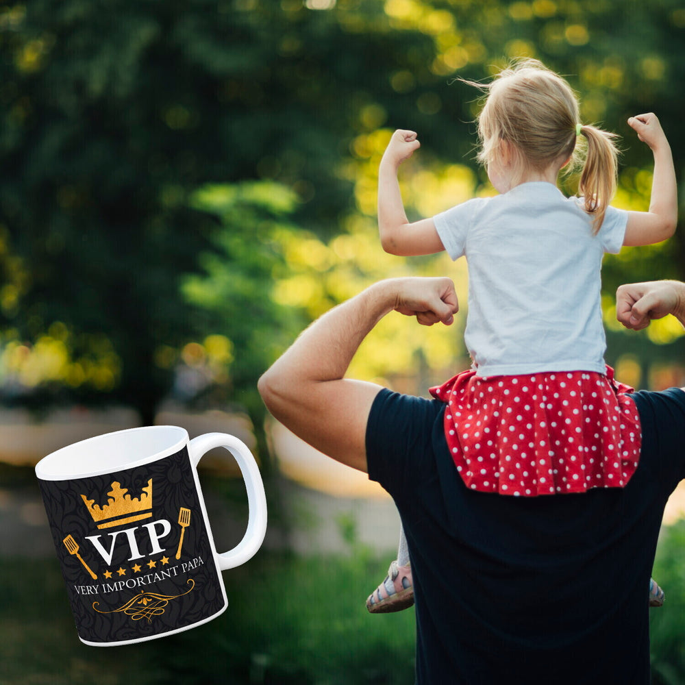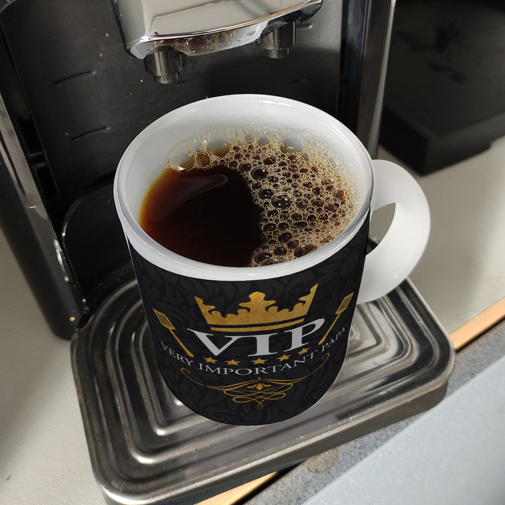 - 1x Very Important Papa Kaffeebecher mit VIP Motiv in der gewählten Ausführung