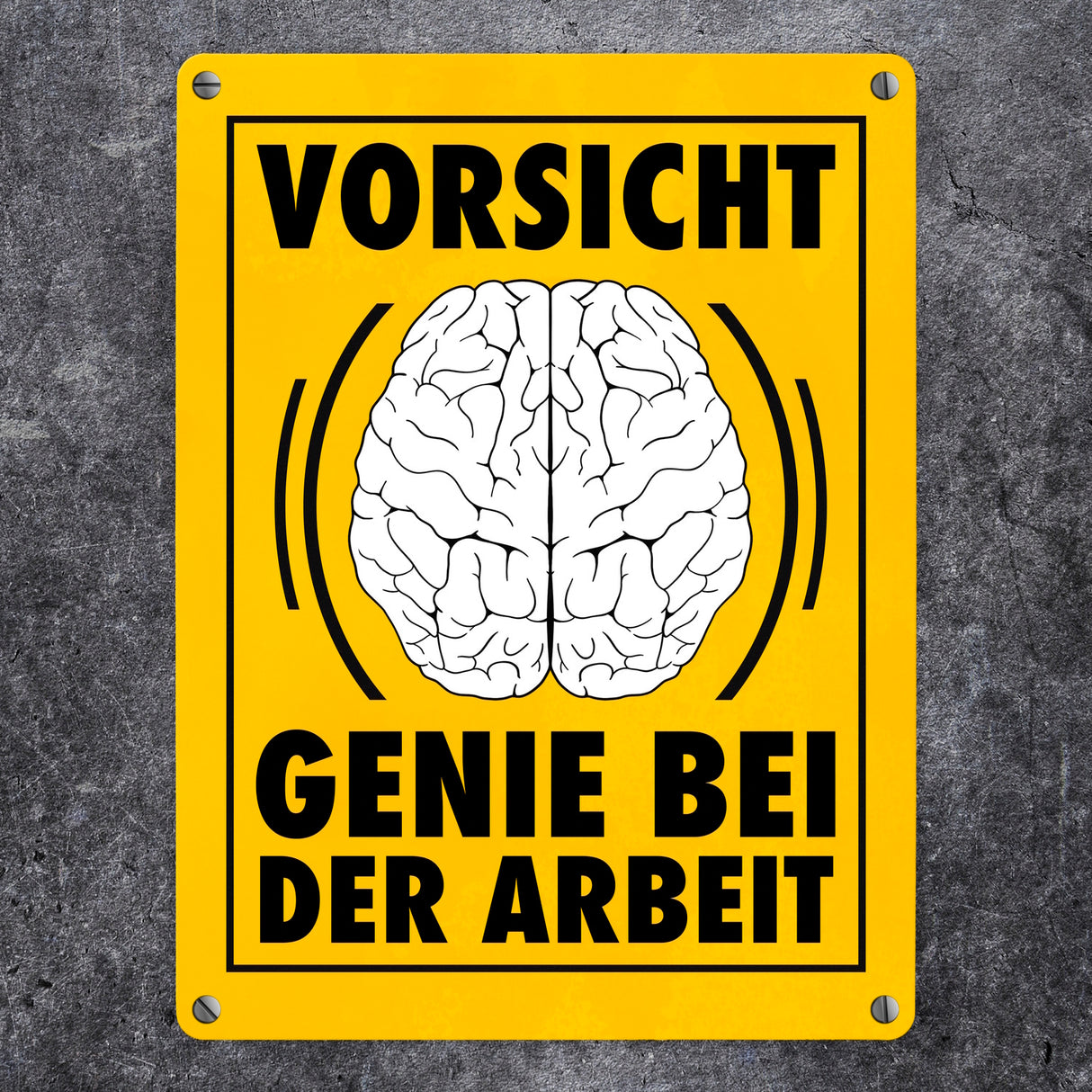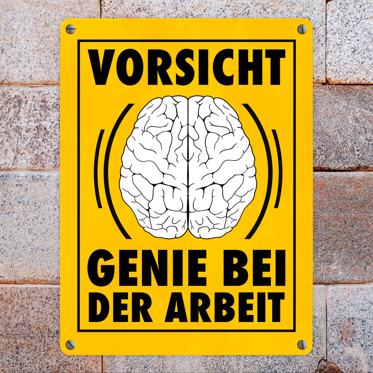 Vorsicht Genie bei der Arbeit witziges Metallschild mit Gehirn