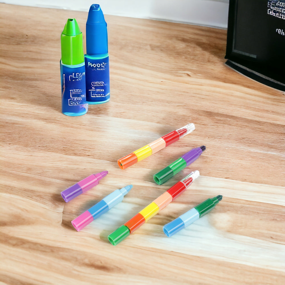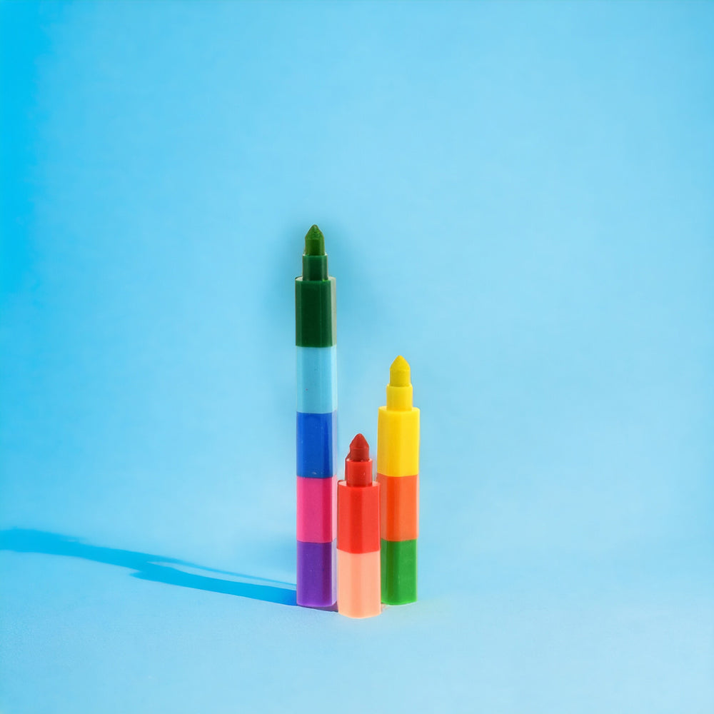 - Das Design ist ein Farbenkarussell in Stiftform! Stellt euch vor, mit einem Klack zehn Farben in der Hand zu haben – stapelbar, wie eine Torte aus Regenbögen. Kinderleicht wechselbar, damit kleine Picasso-Hände flugs von Himmelblau zu Sonnengelb hüpfen können. Echtes DIY-Vergnügen ohne Sucherei!