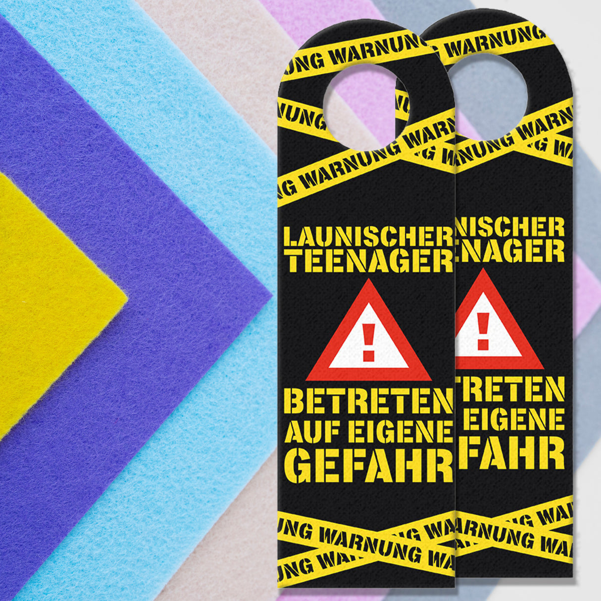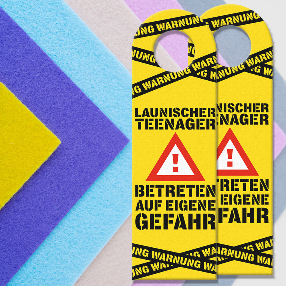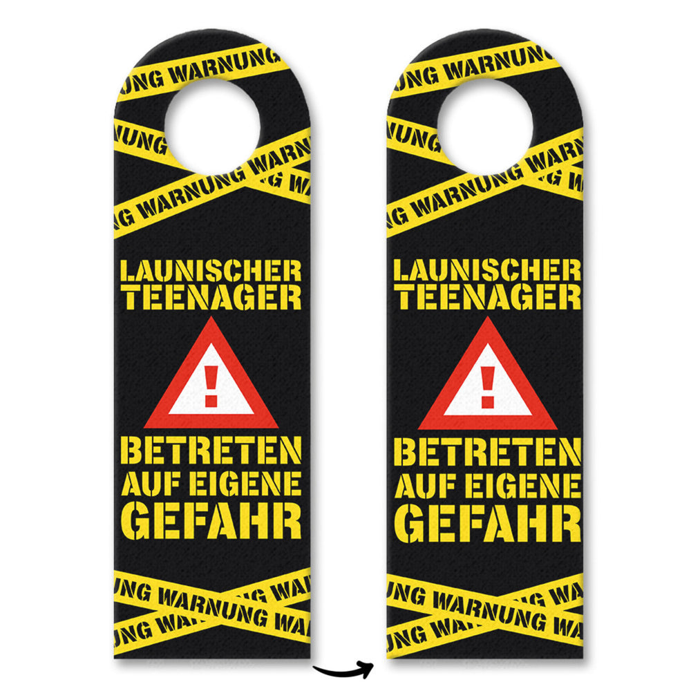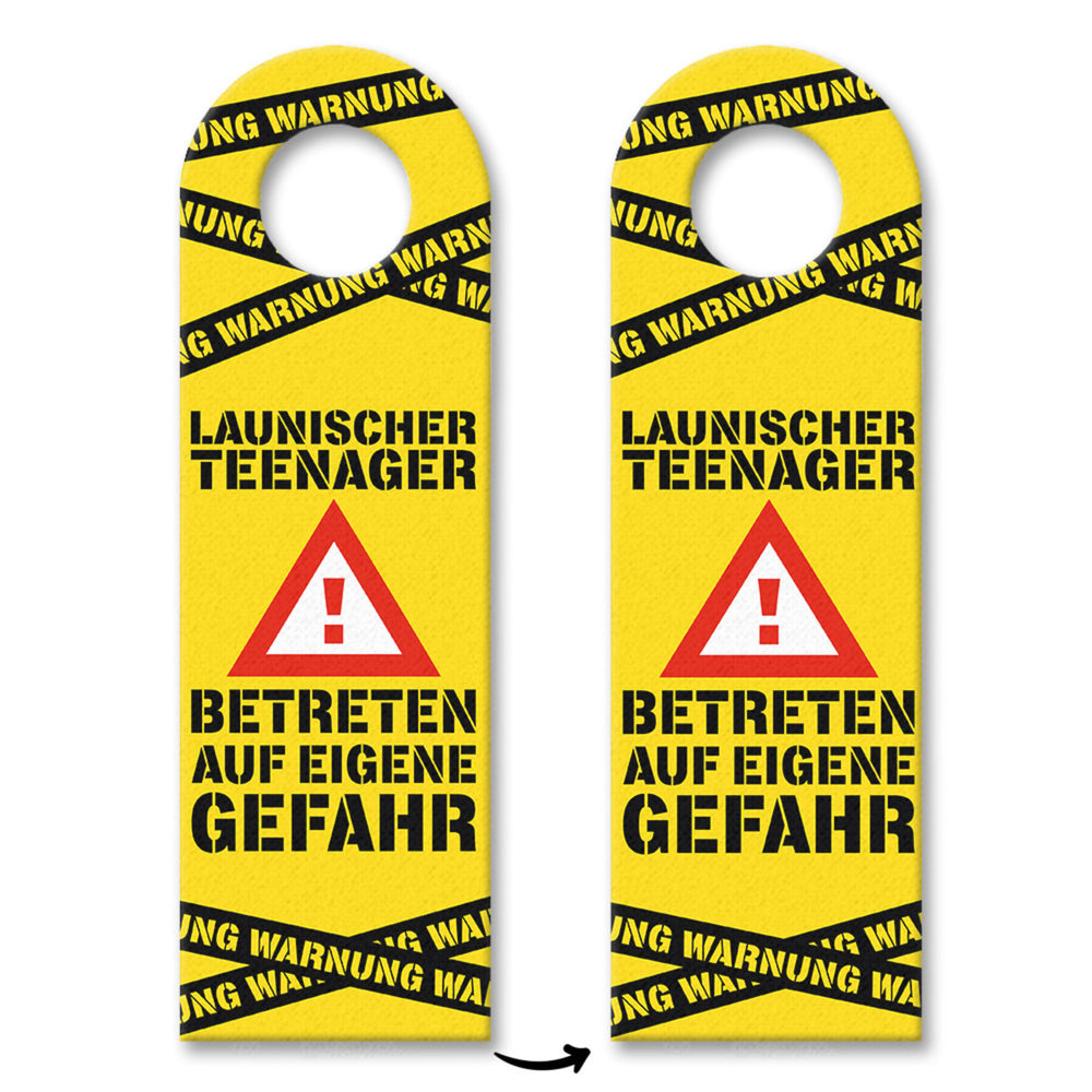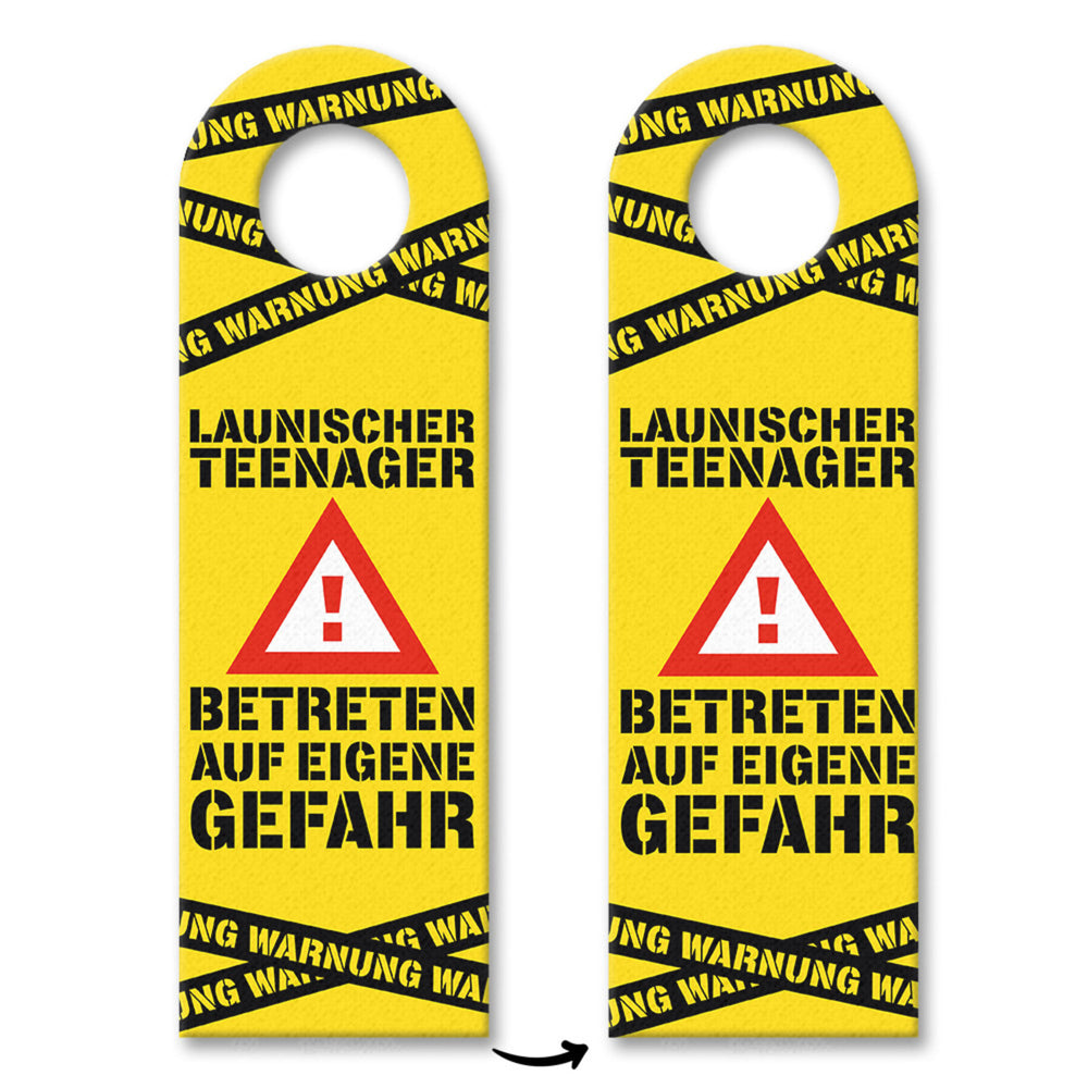 - In den Jugendjahren können viele Kinder zu launischen Teenagern werden. Damit alle in deinem Haushalt stets vor den Launen des Jugendlichen geschützt sind, kannst du mit diesem lustigen Türhänger in gelb vorwarnen.