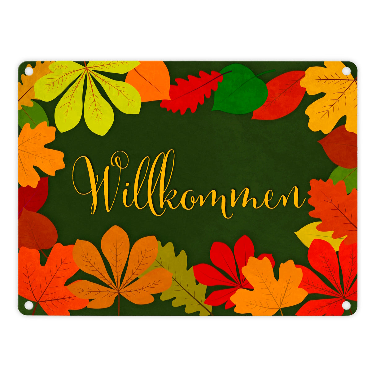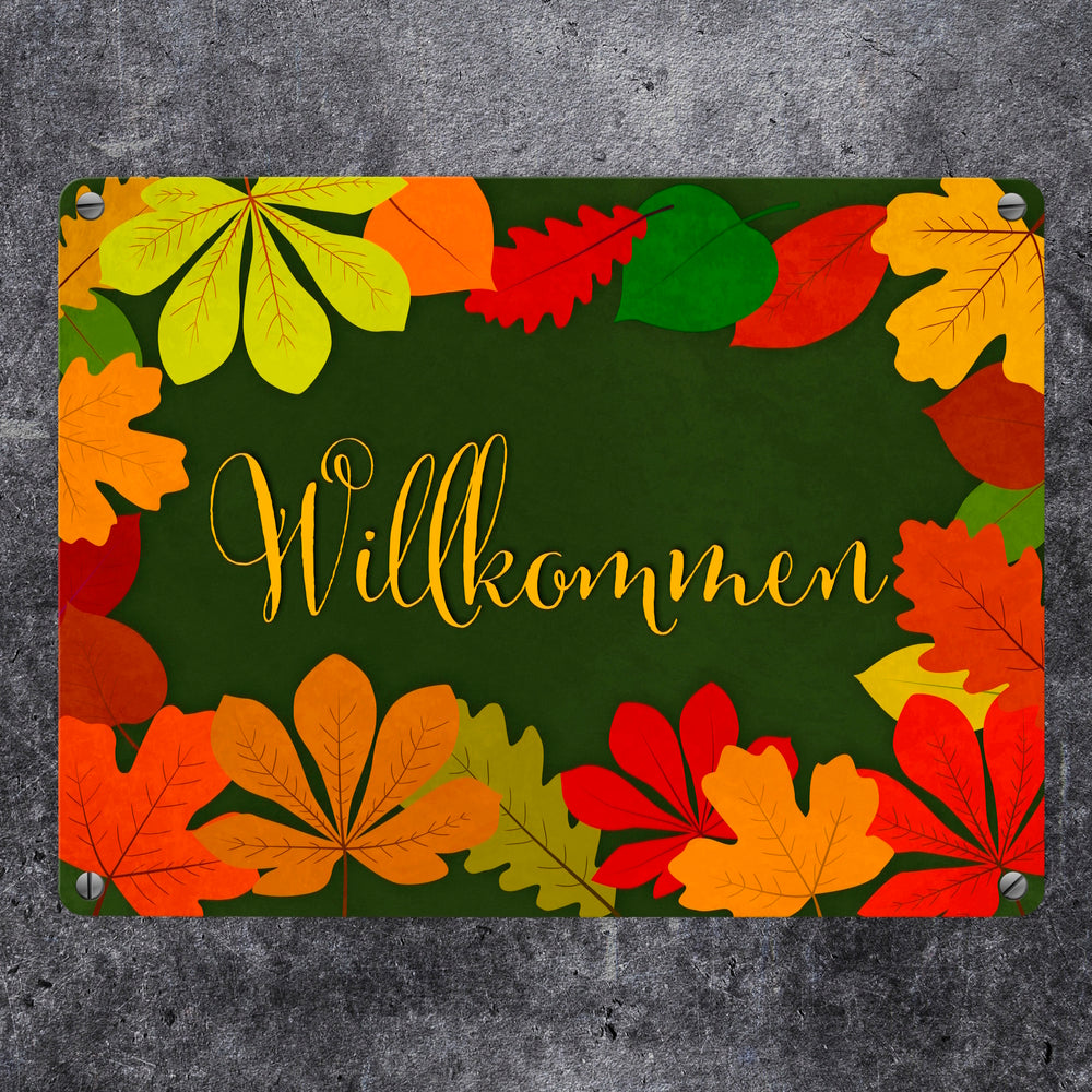 • Der Herbst steht vor der Tür und du möchtest ihn und deinen Besuch auf herbstliche Art begrüßen? Dann wird dir dieses Metallschild sicher gefallen. Ein schönes Willkommen mit buntem Laub begrüßt deine Gäste mit herbstlichen Farben.